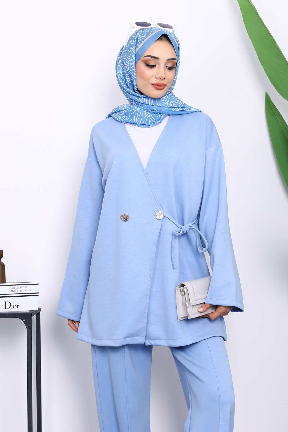 Bebe Mavi Bağlama Detaylı Tunik Pantolonlu Takım Bebe Mavi Bağlama Detaylı Tunik Pantolonlu Takım IMJ007940 42-44