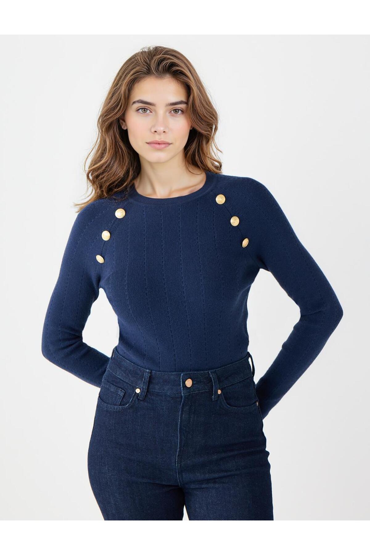 Simli V Yaka Triko Bluz 4K185 Simli V Yaka Triko Bluz 4K185 Standart