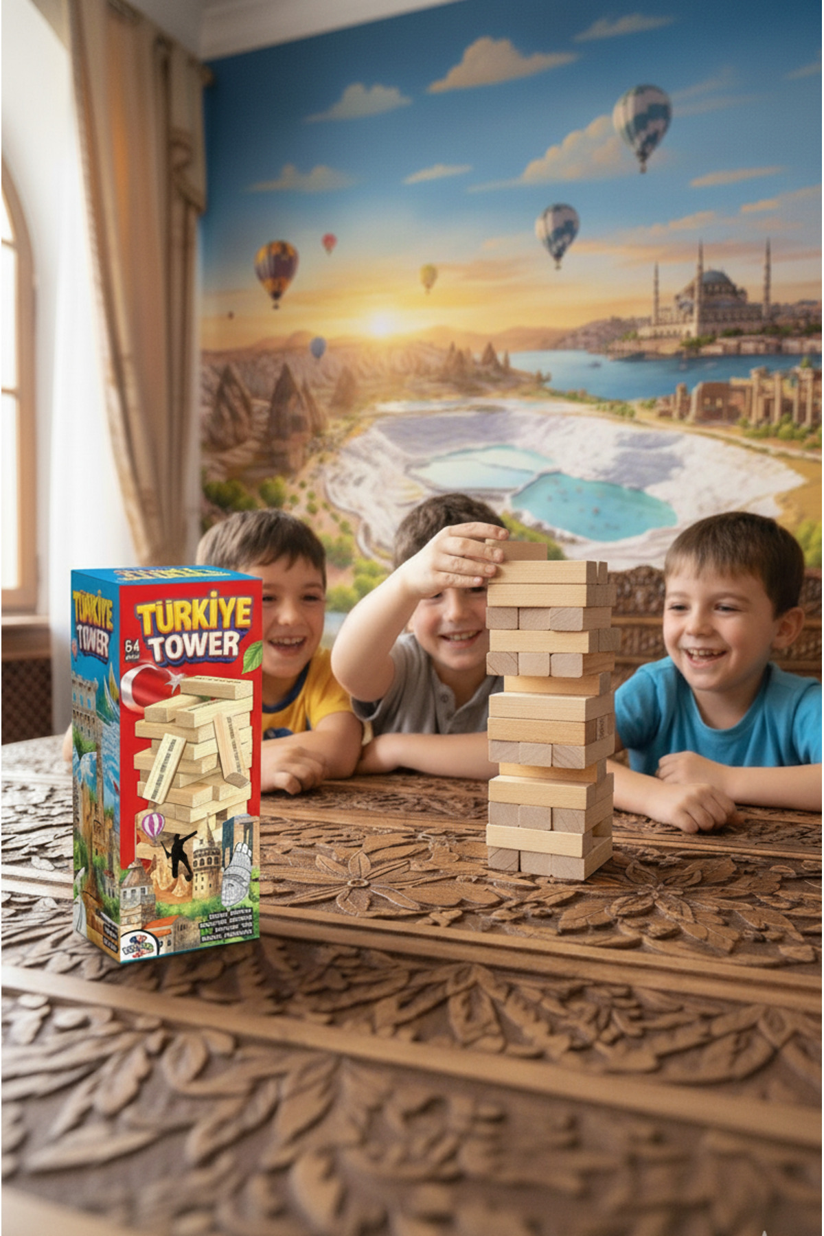 Türkiye tower Genel kültür denge oyunu 54 parça cezalı jenga Türkiye tower Genel kültür denge oyunu 54 parça cezalı jenga Türktower تک سایز