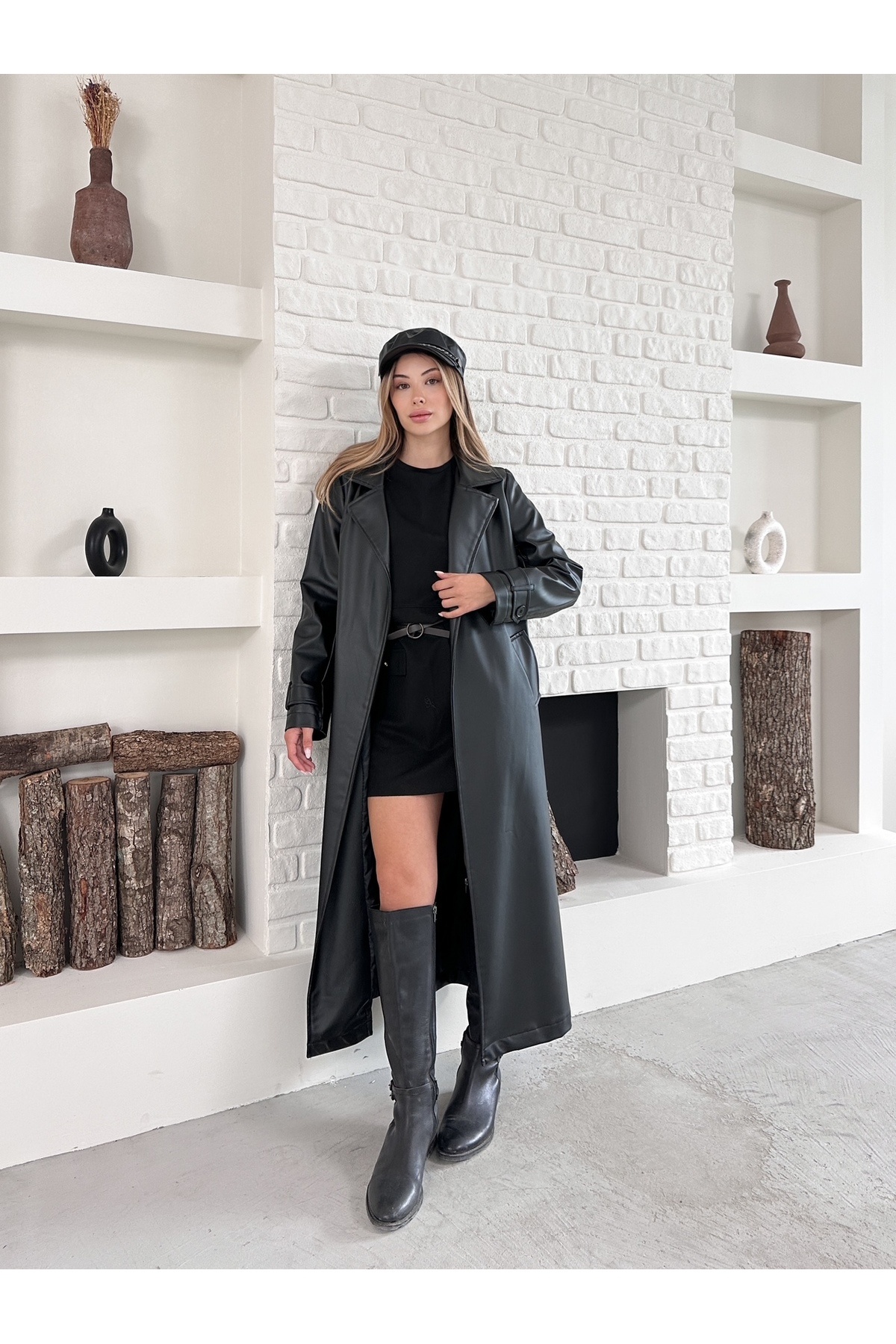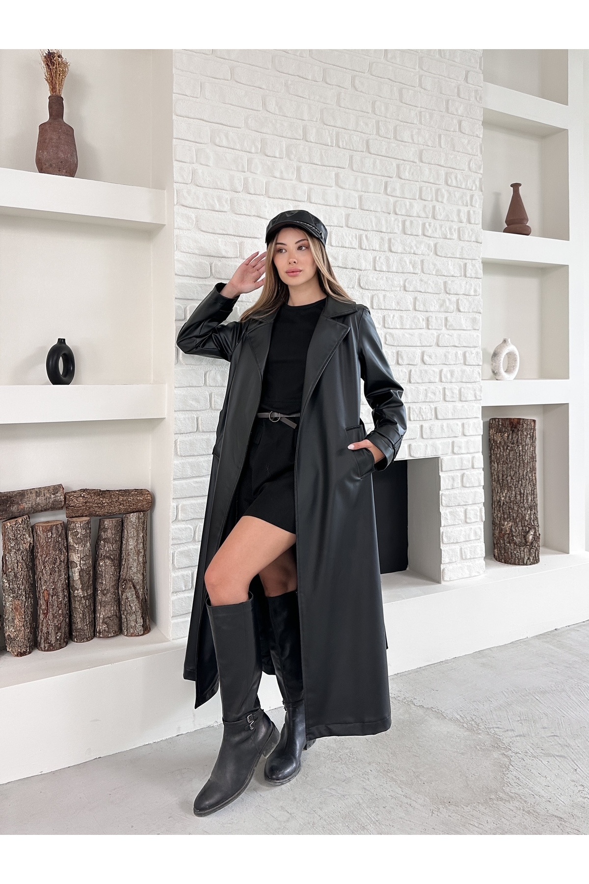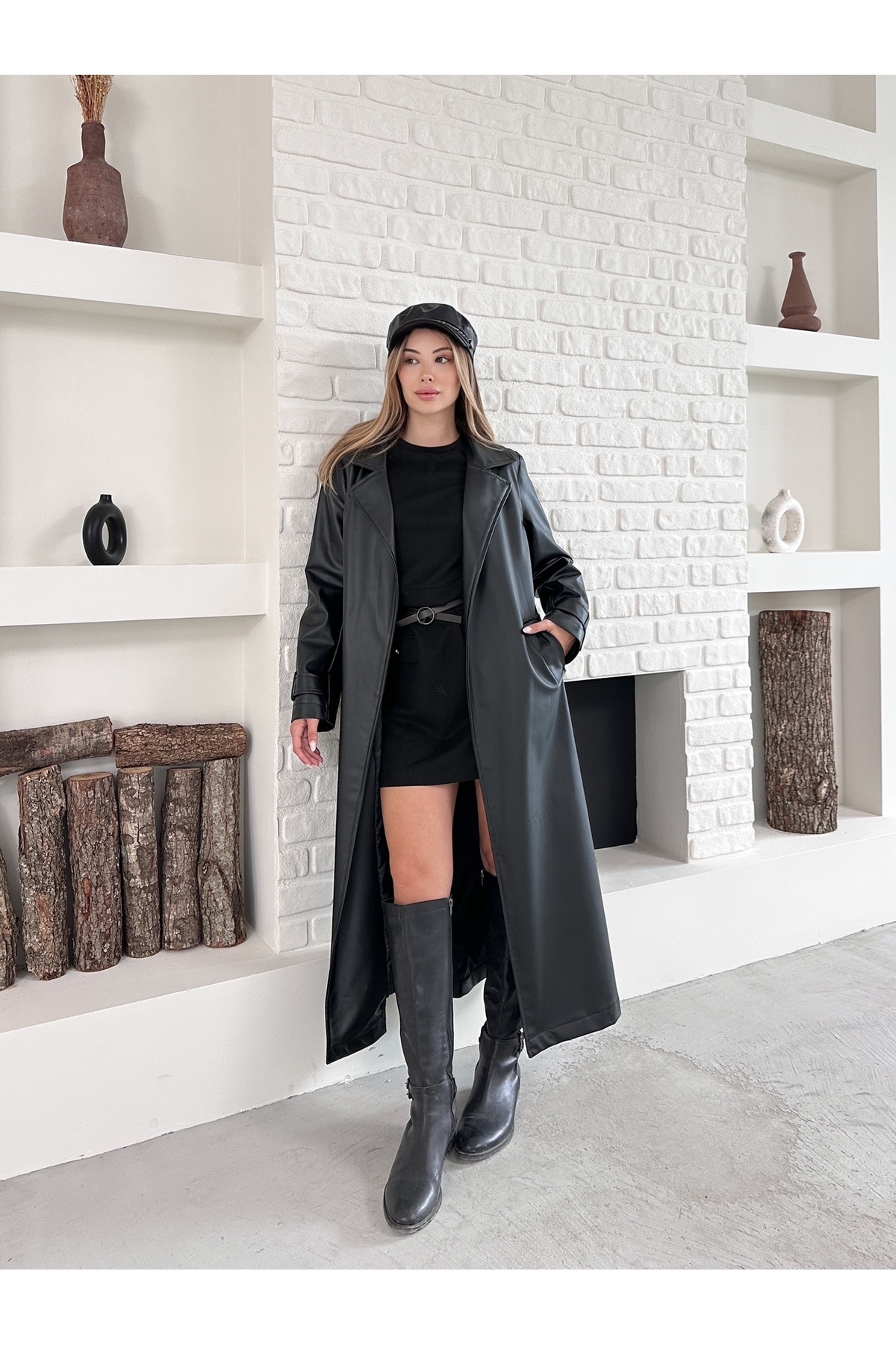 Kuşaklı Astarlı Uzun Deri Kaban Kuşaklı Astarlı Uzun Deri Kaban WB5987345 L