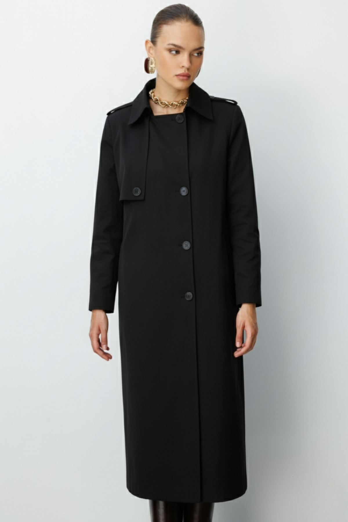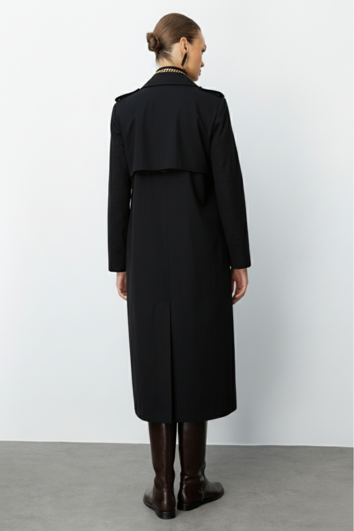 Siyah Apoletli Klasik Maxi Mac Trençkot Siyah Apoletli Klasik Maxi Mac Trençkot M1MZ1020150061 XL