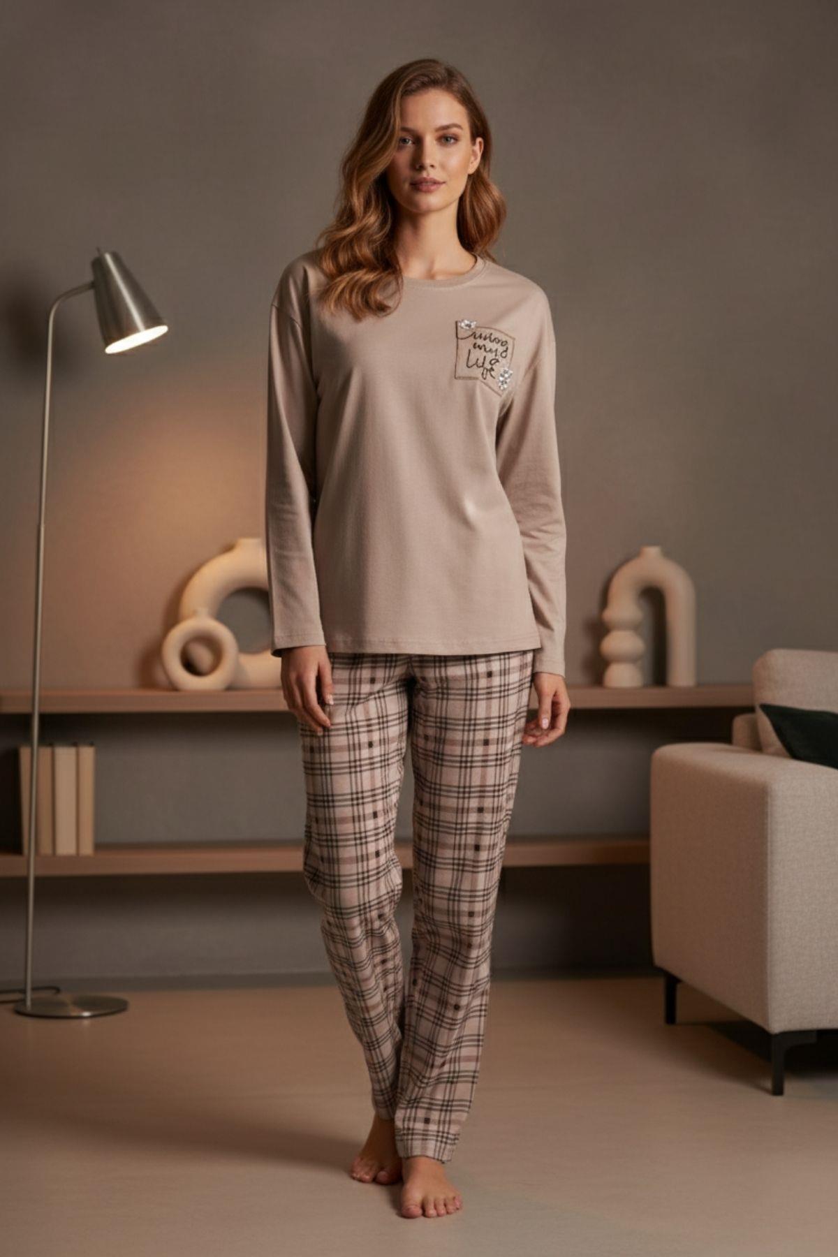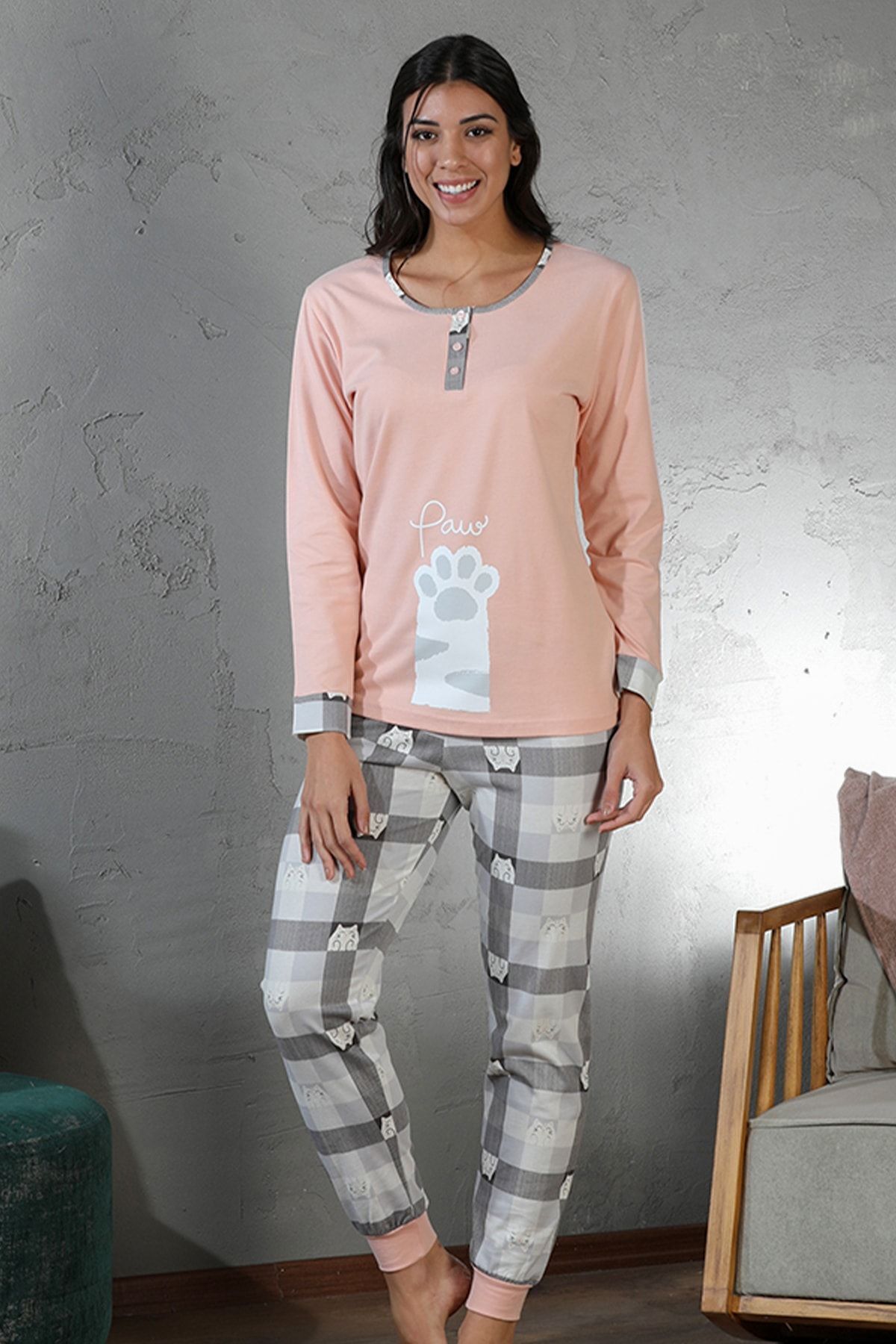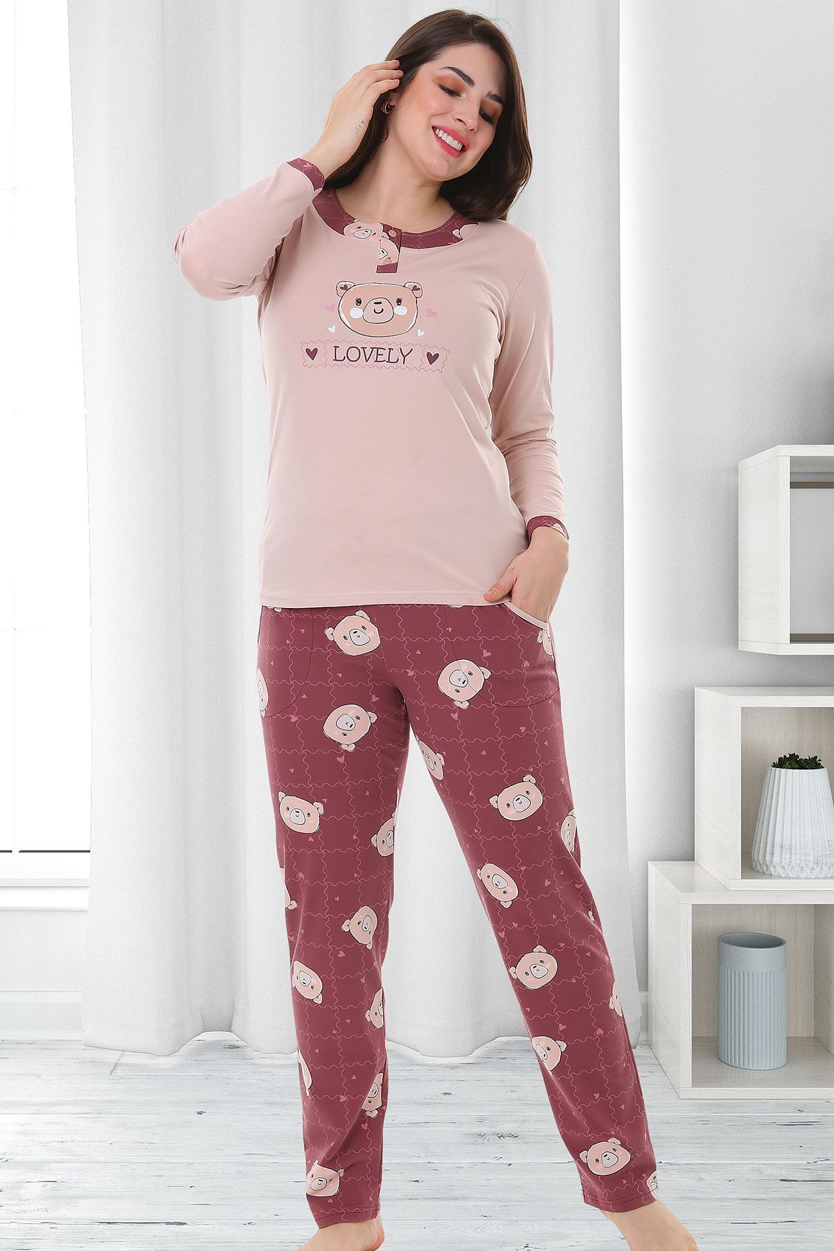 Pamuklu Uzun Kollu Kadın Pijama Takımı Pamuklu Uzun Kollu Kadın Pijama Takımı 1050 XL