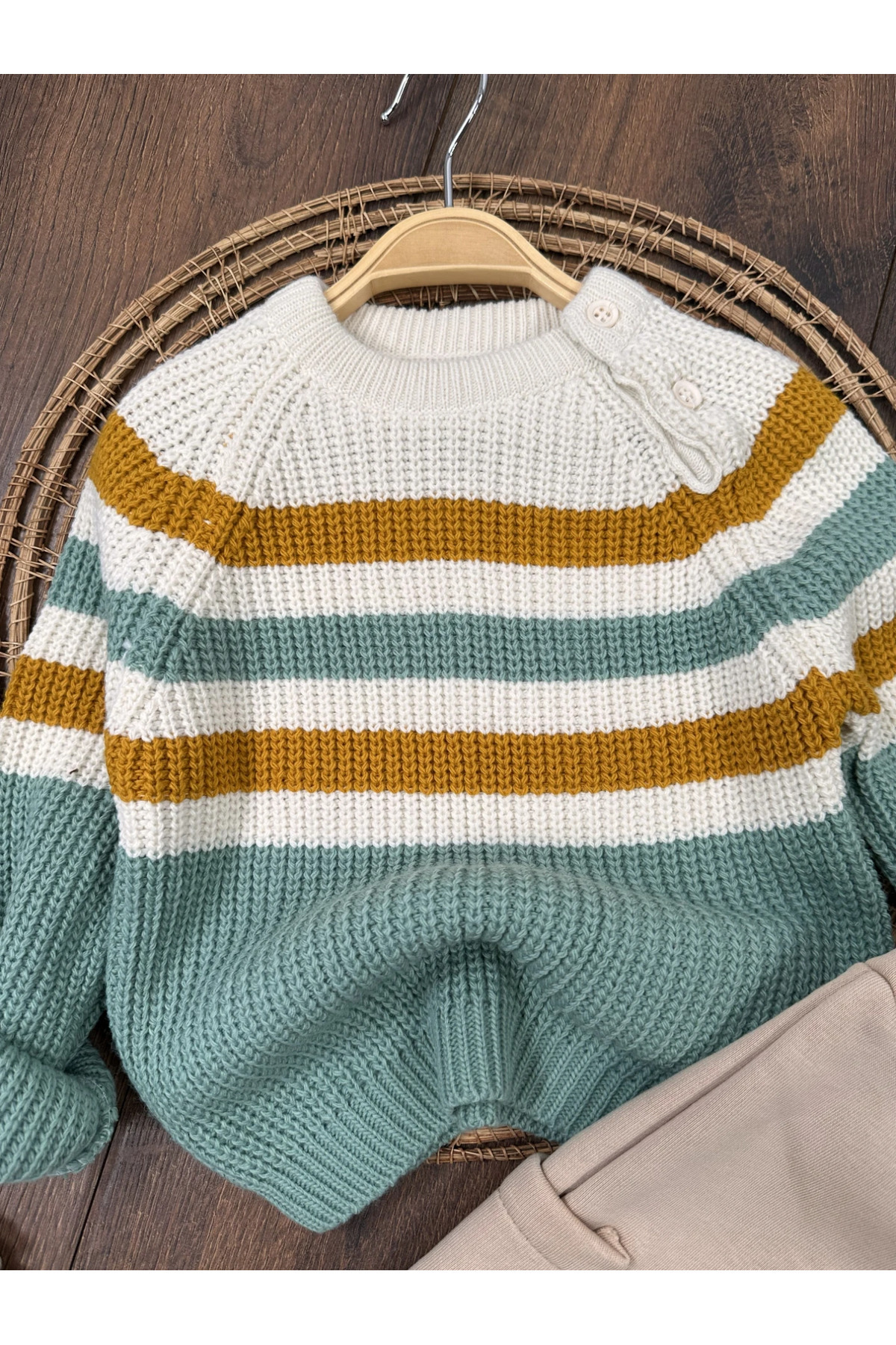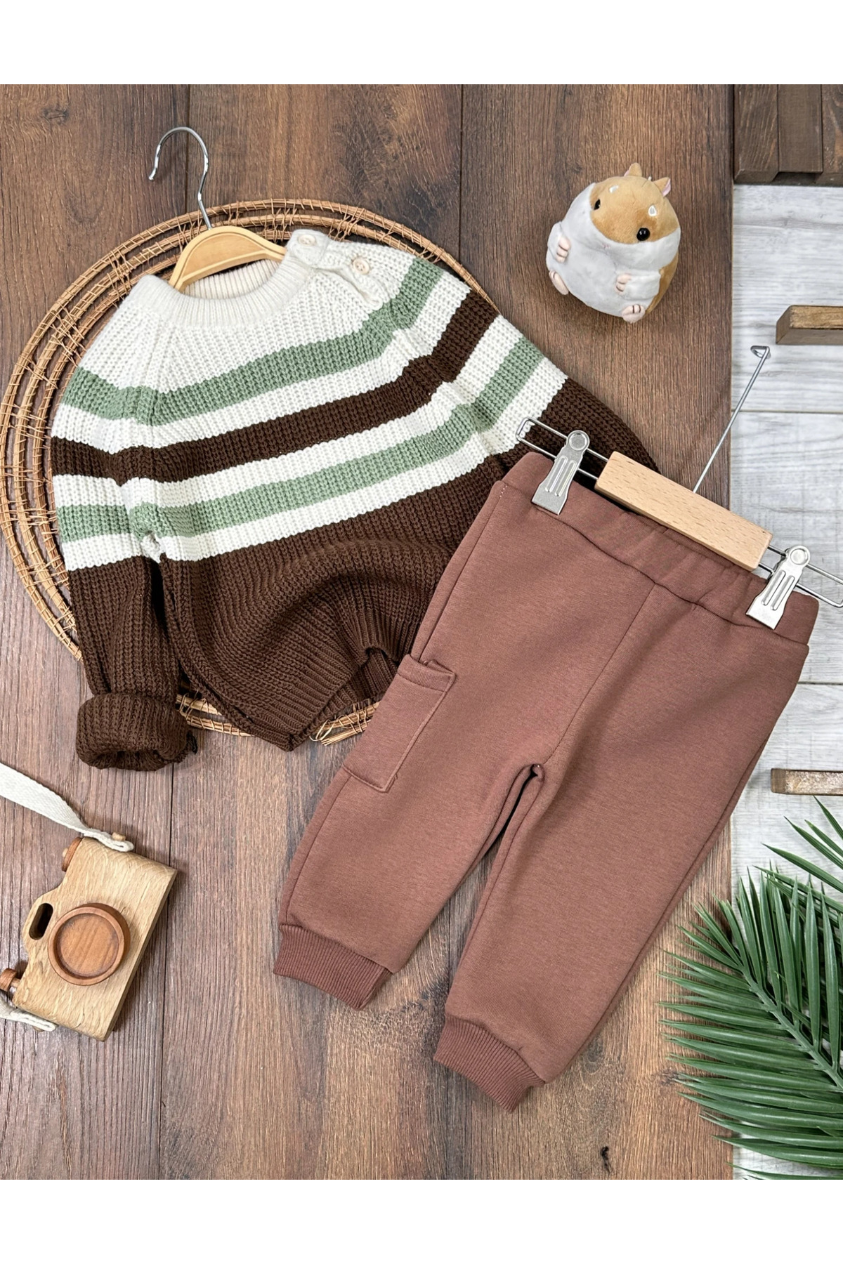 Oversize Triko Kazak Omuzdan Düğmeli 3 İplik İçi Şardonlu Pantolon Kışlık Erkek Bebek Takım Oversize Triko Kazak Omuzdan Düğmeli 3 İplik İçi Şardonlu Pantolon Kışlık Erkek Bebek Takım 10201 18-24 AY