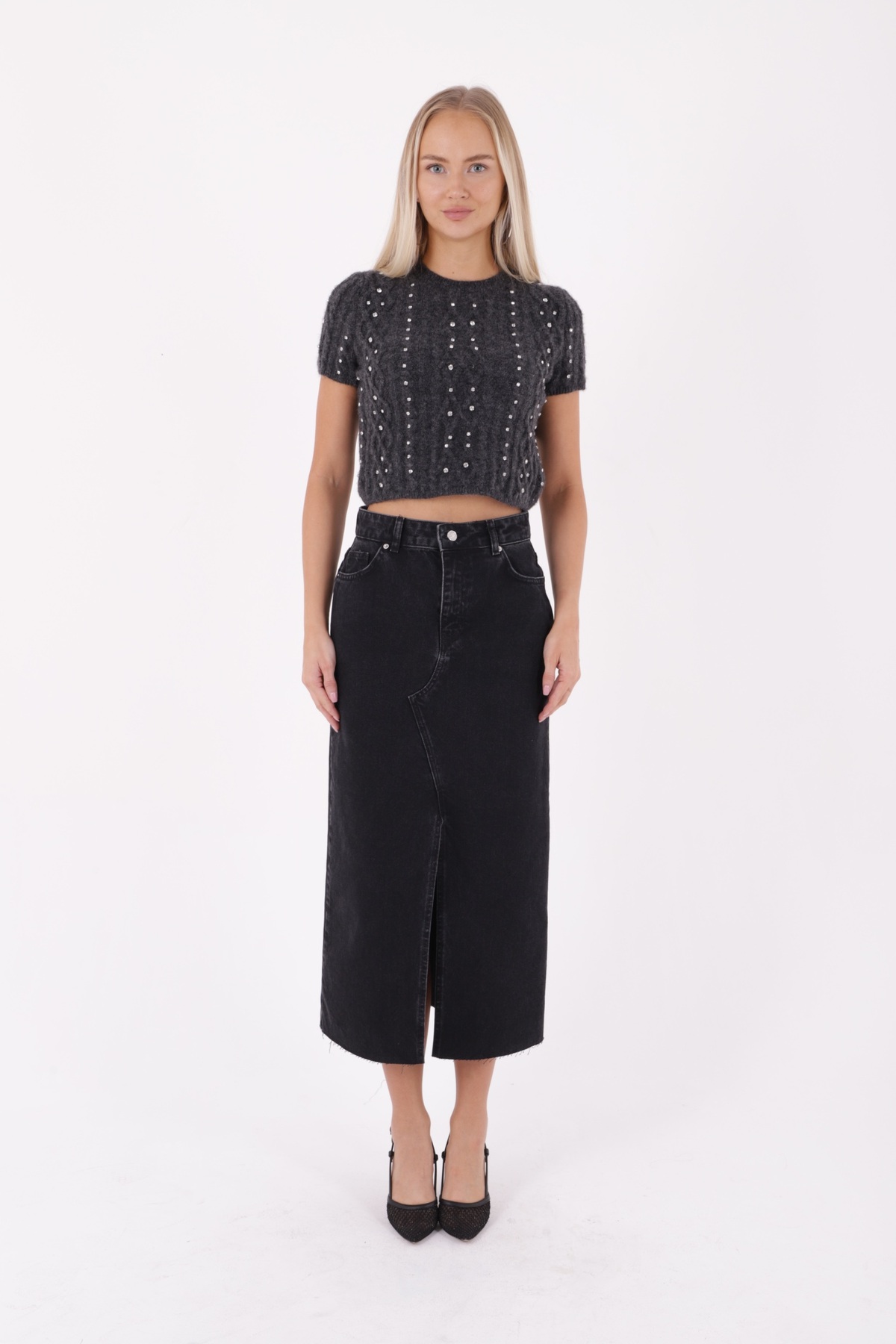 Kadın Açık Mavi Düğme Detaylı Uzun Denim Etek ETK-19000359 Kadın Açık Mavi Düğme Detaylı Uzun Denim Etek ETK-19000359 L