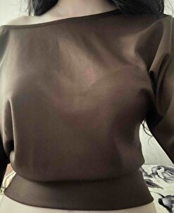 Kadın Kahverengi Düşük Omuzlu Modal Dokulu Bluz Kadın Kahverengi Düşük Omuzlu Modal Dokulu Bluz BJN673 L