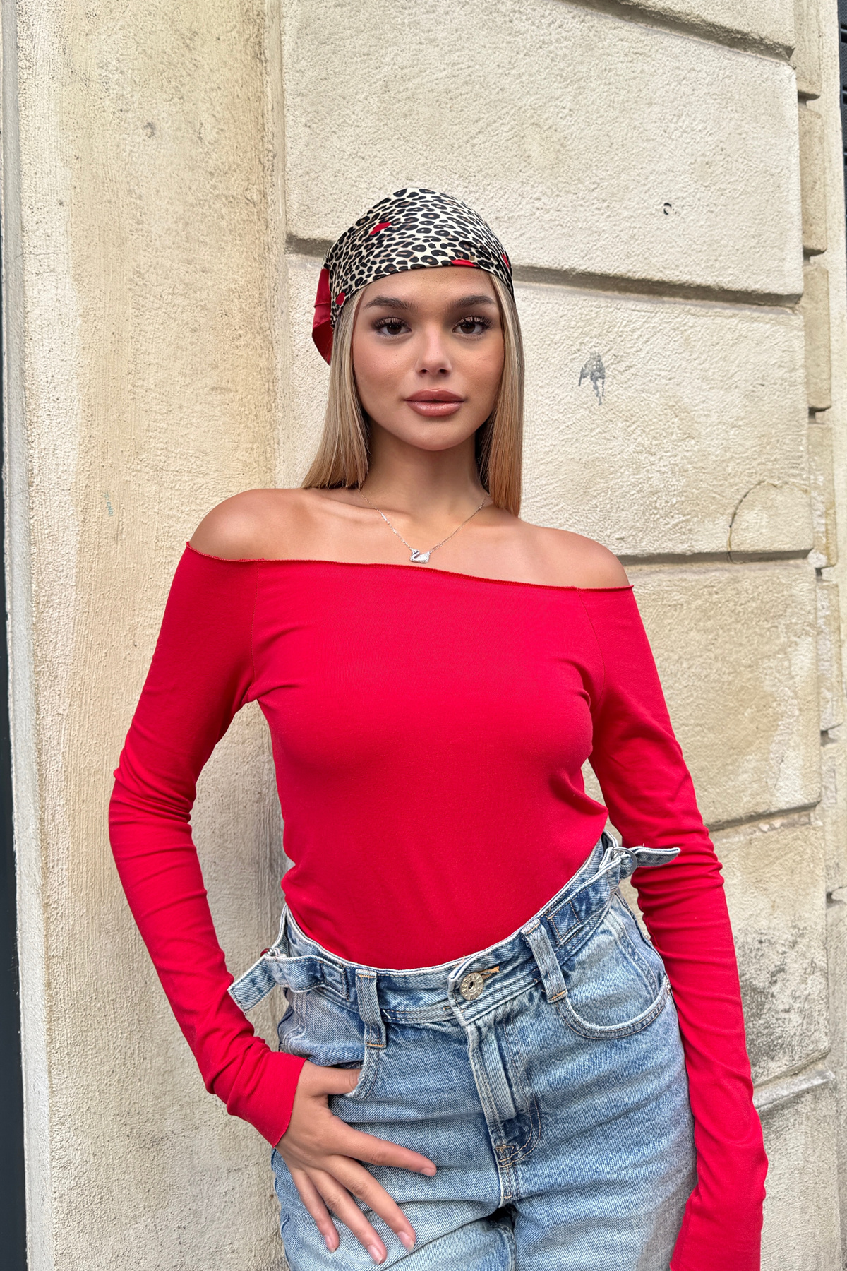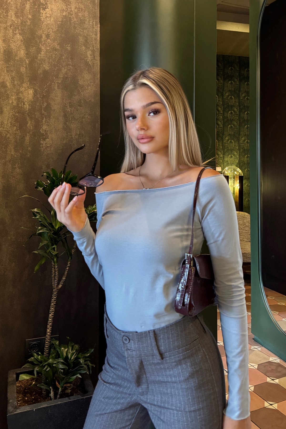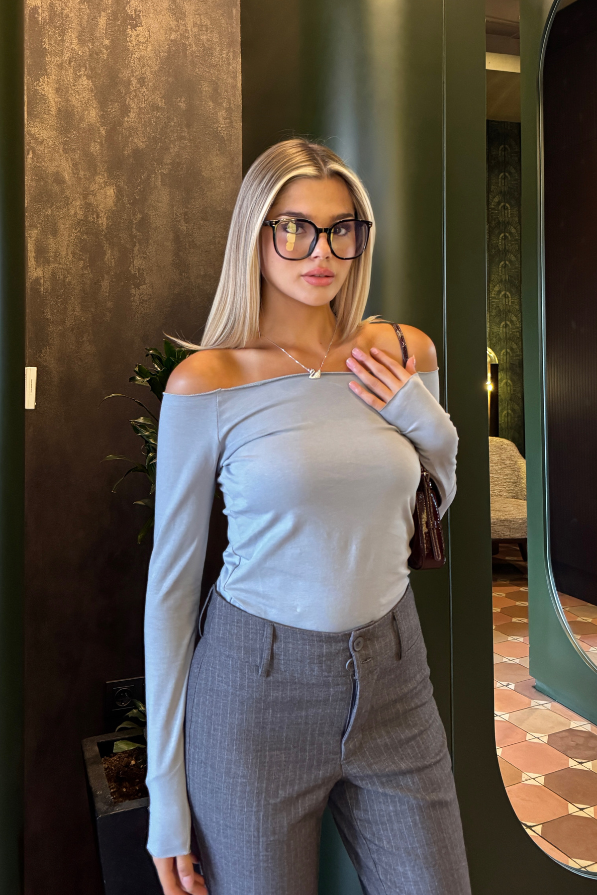 Gri Omuzları Açık Uzun Kollu Bluz Gri Omuzları Açık Uzun Kollu Bluz LAMYOB XL