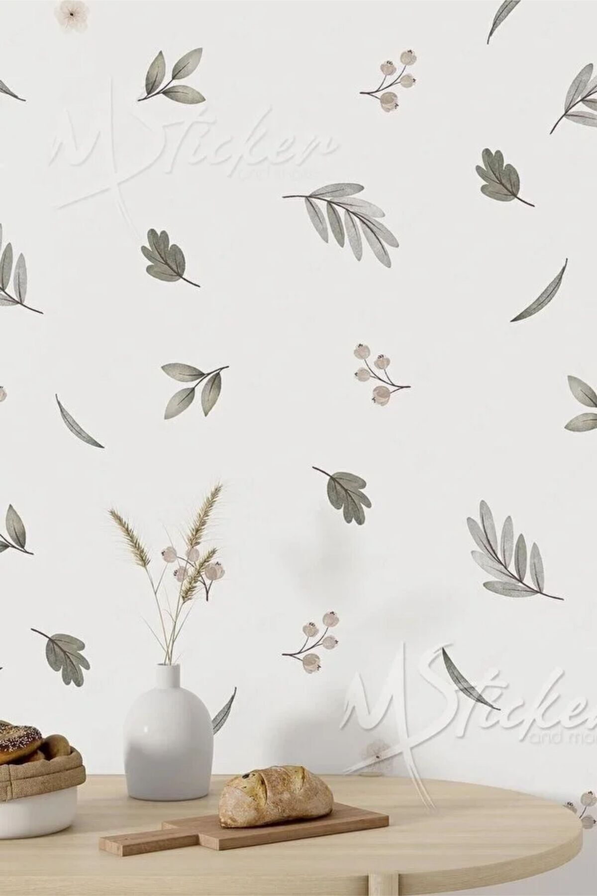 Yapraklar Ve Çiçekler Duvar Sticker Seti - Ev Dekorasyon Yeşil Yapraklar Soft Renklerde Sticker Yapraklar Ve Çiçekler Duvar Sticker Seti - Ev Dekorasyon Yeşil Yapraklar Soft Renklerde Sticker CLK-004 100 x 40
