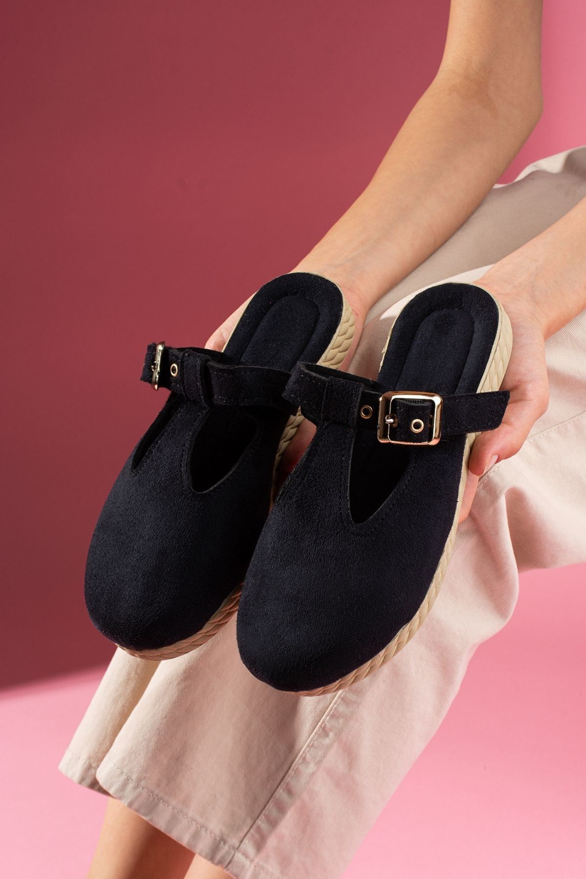 Sabrosa Siyah Süet Tokalı Önü Kapalı Kadın Ev Terliği Sabrosa Siyah Süet Tokalı Önü Kapalı Kadın Ev Terliği 5010YGR 40