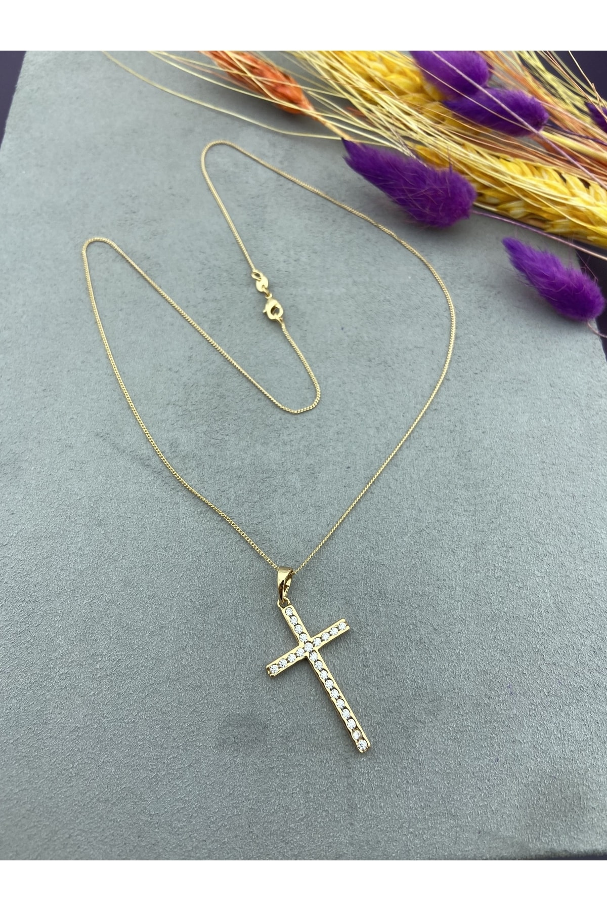 Kadın Çelik Gold Renk Zirkon Taş Haç Kolye Kadın Çelik Gold Renk Zirkon Taş Haç Kolye E194 تک سایز