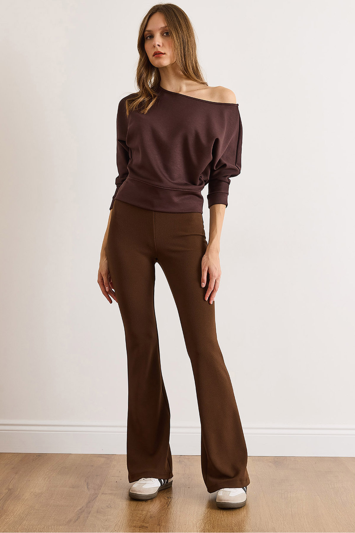 Kadın Kahverengi Poliviskon İspanyol Paça Dökümlü Pantolon PNT-19000369 Kadın Kahverengi Poliviskon İspanyol Paça Dökümlü Pantolon PNT-19000369 XL