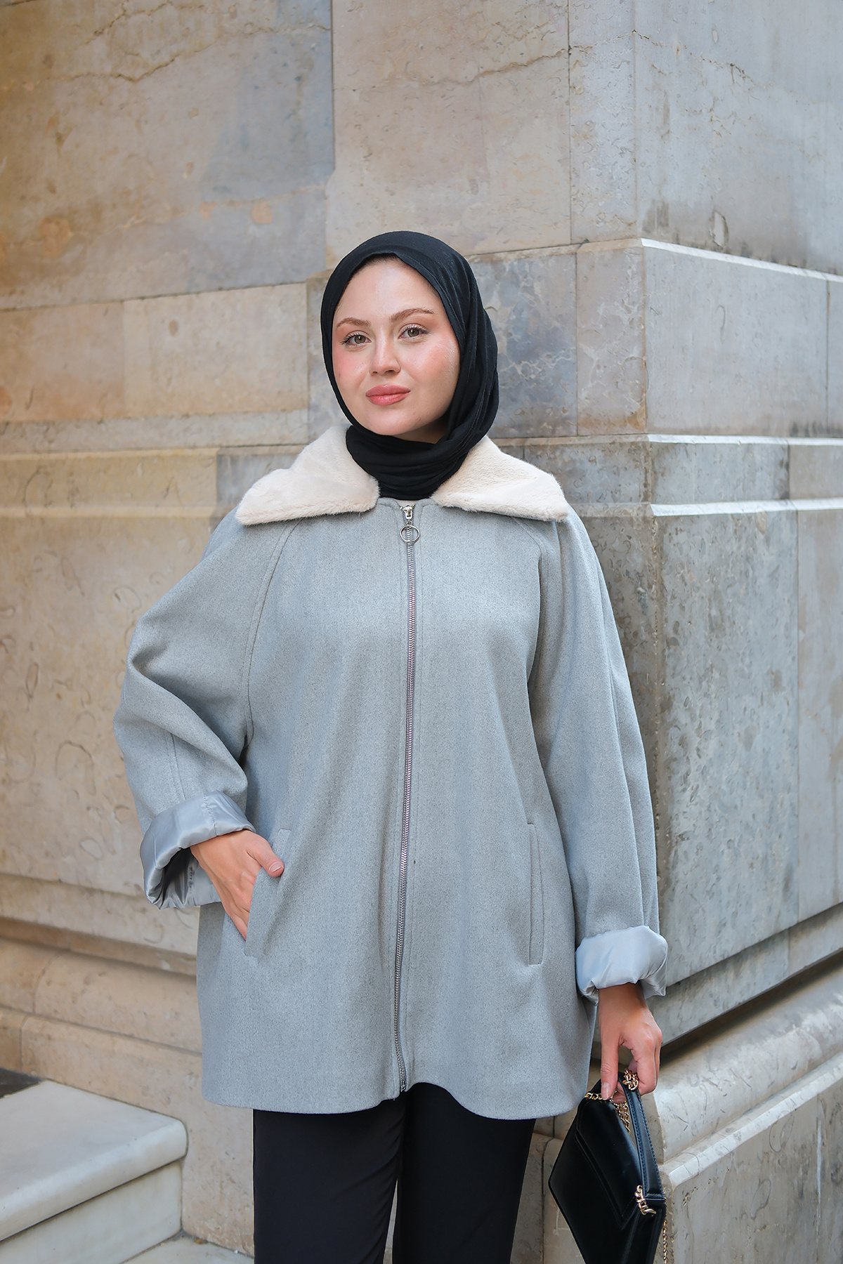 Kadın Peluş Yaka Ceket Yeşil Kadın Peluş Yaka Ceket Yeşil 284-3002 L/XL