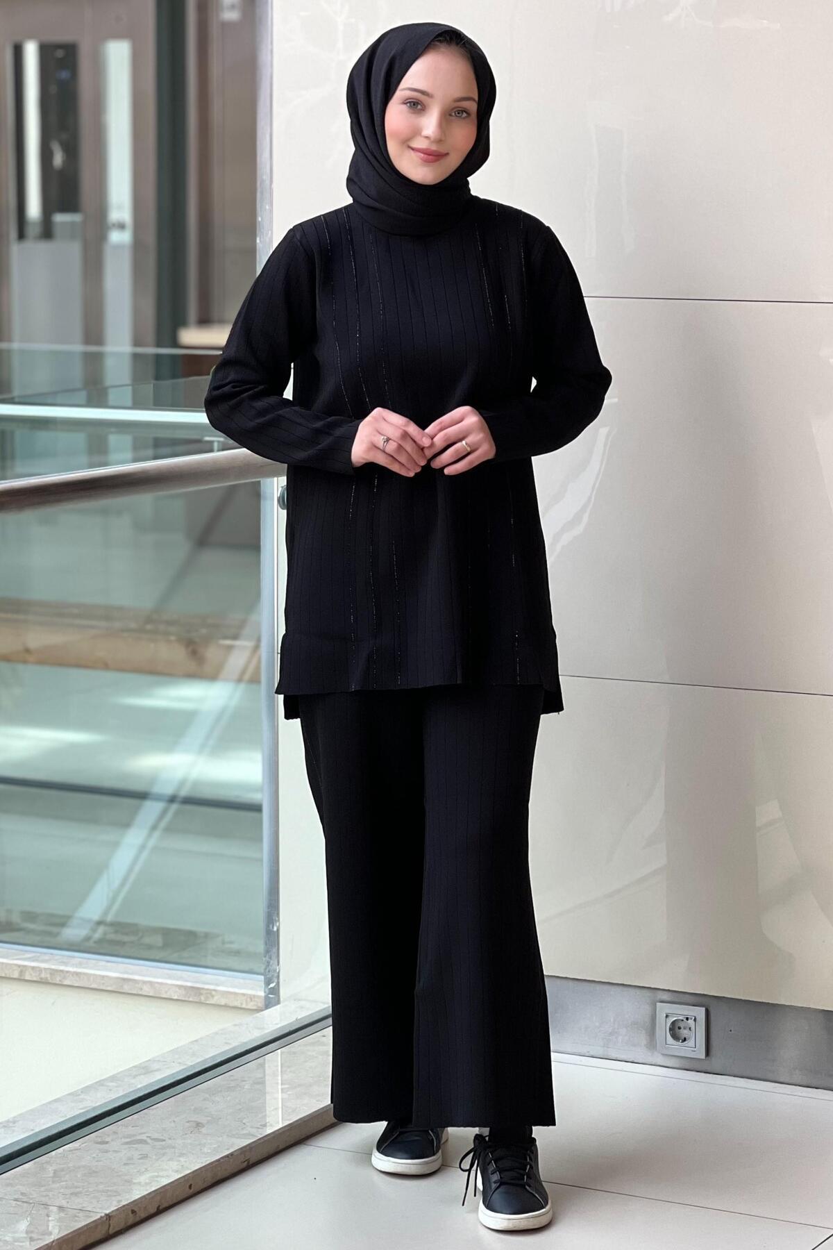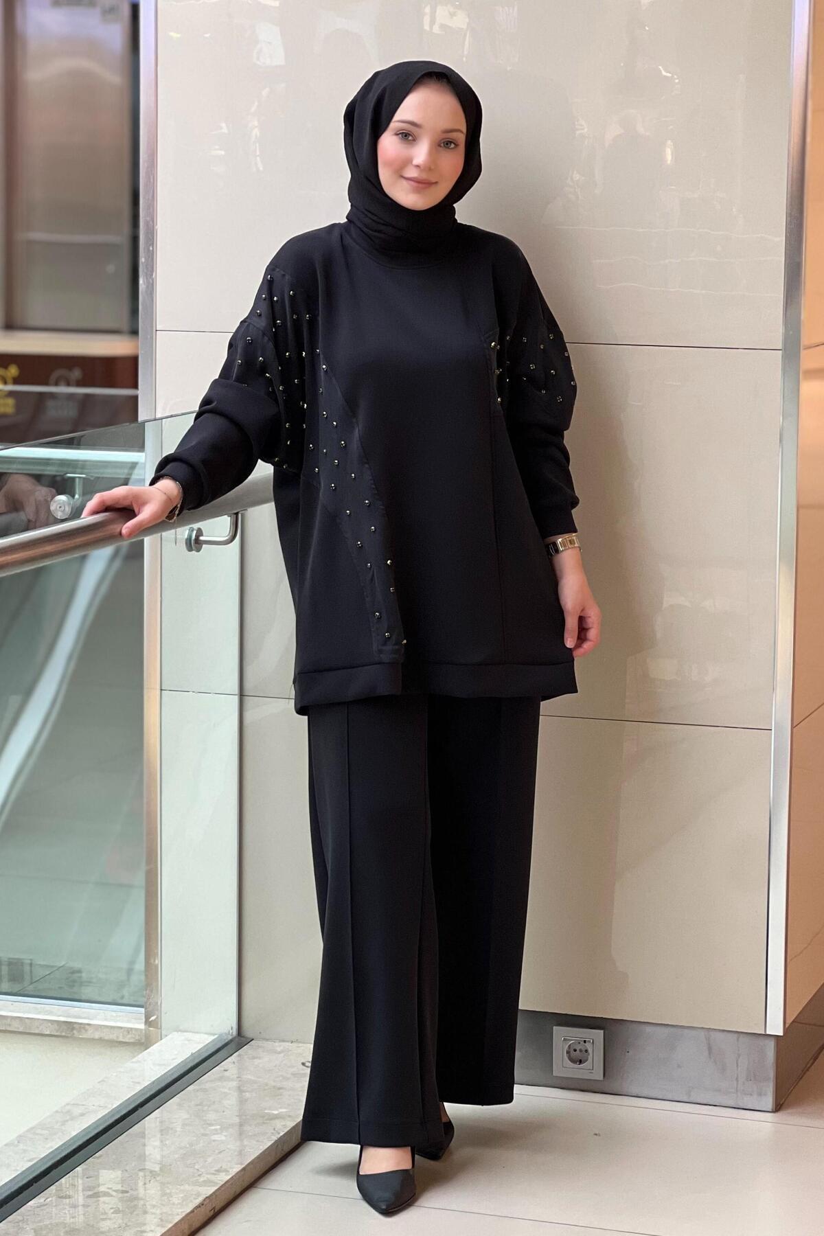 Su Yolu Taş İşlemeli Tunik Pantolon Takım Su Yolu Taş İşlemeli Tunik Pantolon Takım 26KNUSTKM1355 2