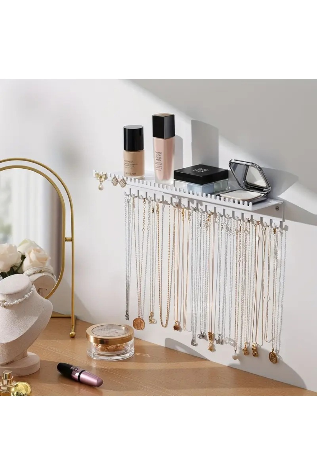 BEYAZ Metal Duvara Montajlı Takı Askılığı Takı Standı Bileklik Kolye Askılığı Raflı Takı Organizeri BEYAZ Metal Duvara Montajlı Takı Askılığı Takı Standı Bileklik Kolye Askılığı Raflı Takı Organizeri 57717 تک سایز