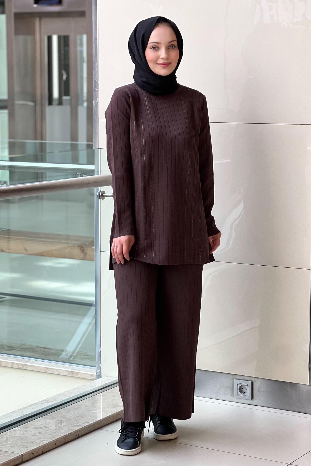 Su Yolu Taş İşlemeli Tunik Pantolon Takım Su Yolu Taş İşlemeli Tunik Pantolon Takım 26KNUSTKM1355 2