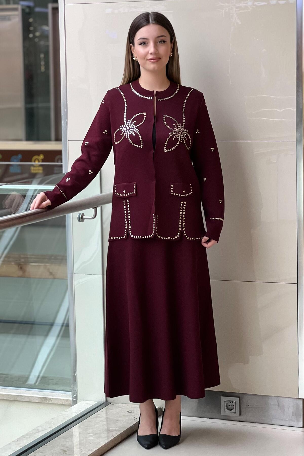 Zımba Detaylı Triko Hırka Etek Takım Zımba Detaylı Triko Hırka Etek Takım 26KGSTKM3213 2