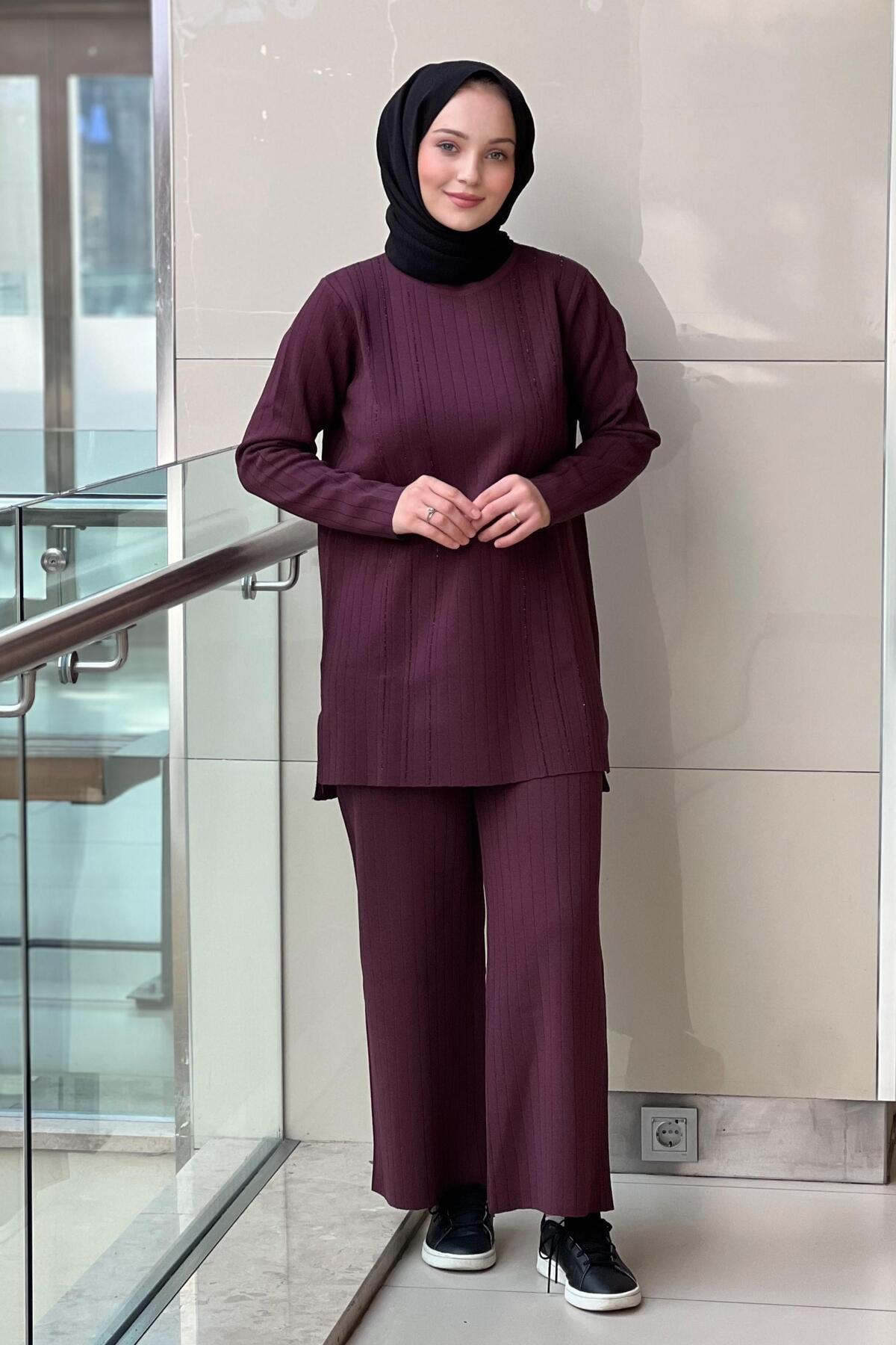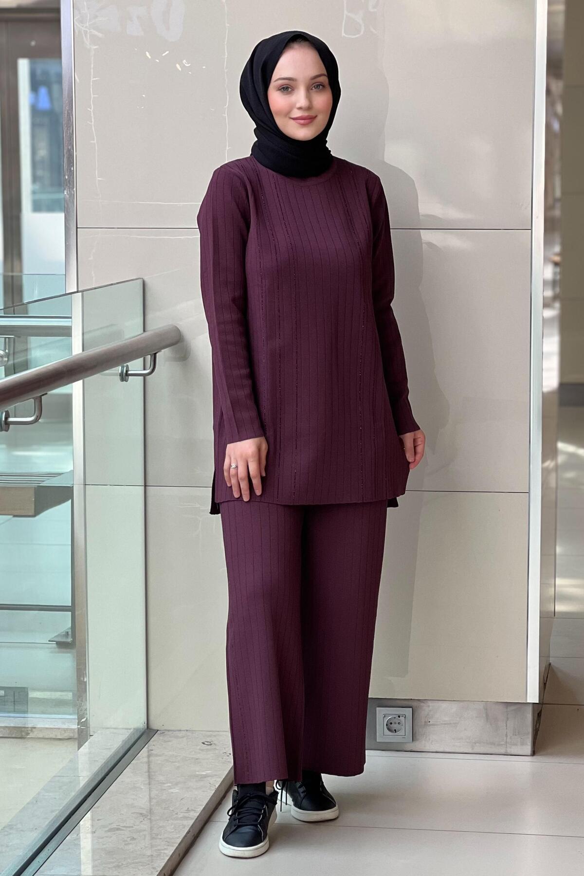 Su Yolu Taş İşlemeli Tunik Pantolon Takım Su Yolu Taş İşlemeli Tunik Pantolon Takım 26KNUSTKM1355 2