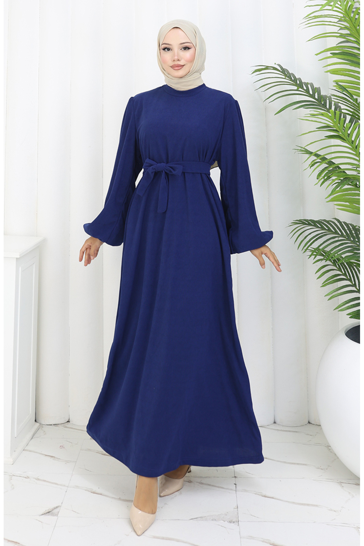 Kolu lastikli Kuşaklı Elbise 2161-03 Kiremit Kolu lastikli Kuşaklı Elbise 2161-03 Kiremit ZEMHERİ2161 54-56