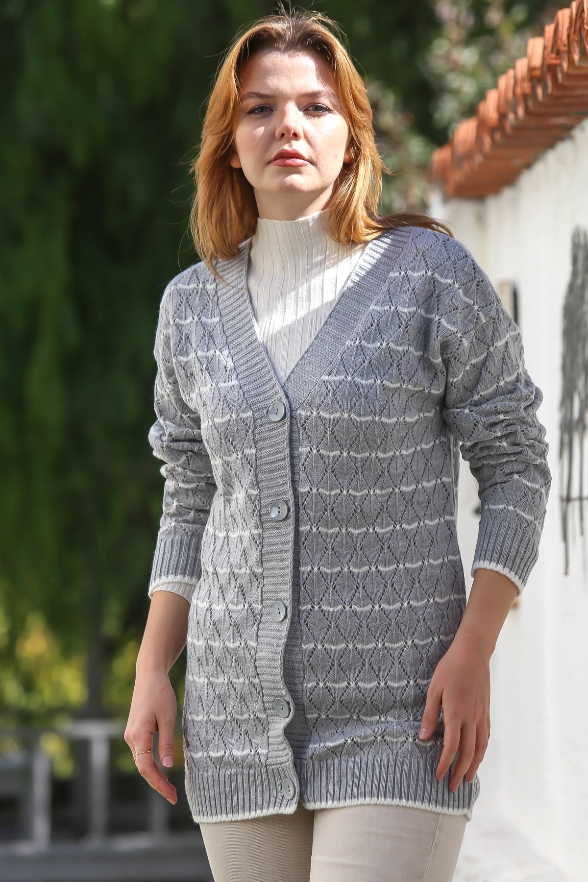 Yasemin Giyim Dantelli Retro Zarif Çiçek Aksesuarlı Fırfır Yaka Çiçekli Cepli Akrilik Triko Hırka Yasemin Giyim Dantelli Retro Zarif Çiçek Aksesuarlı Fırfır Yaka Çiçekli Cepli Akrilik Triko Hırka MDLKOD15 Standart