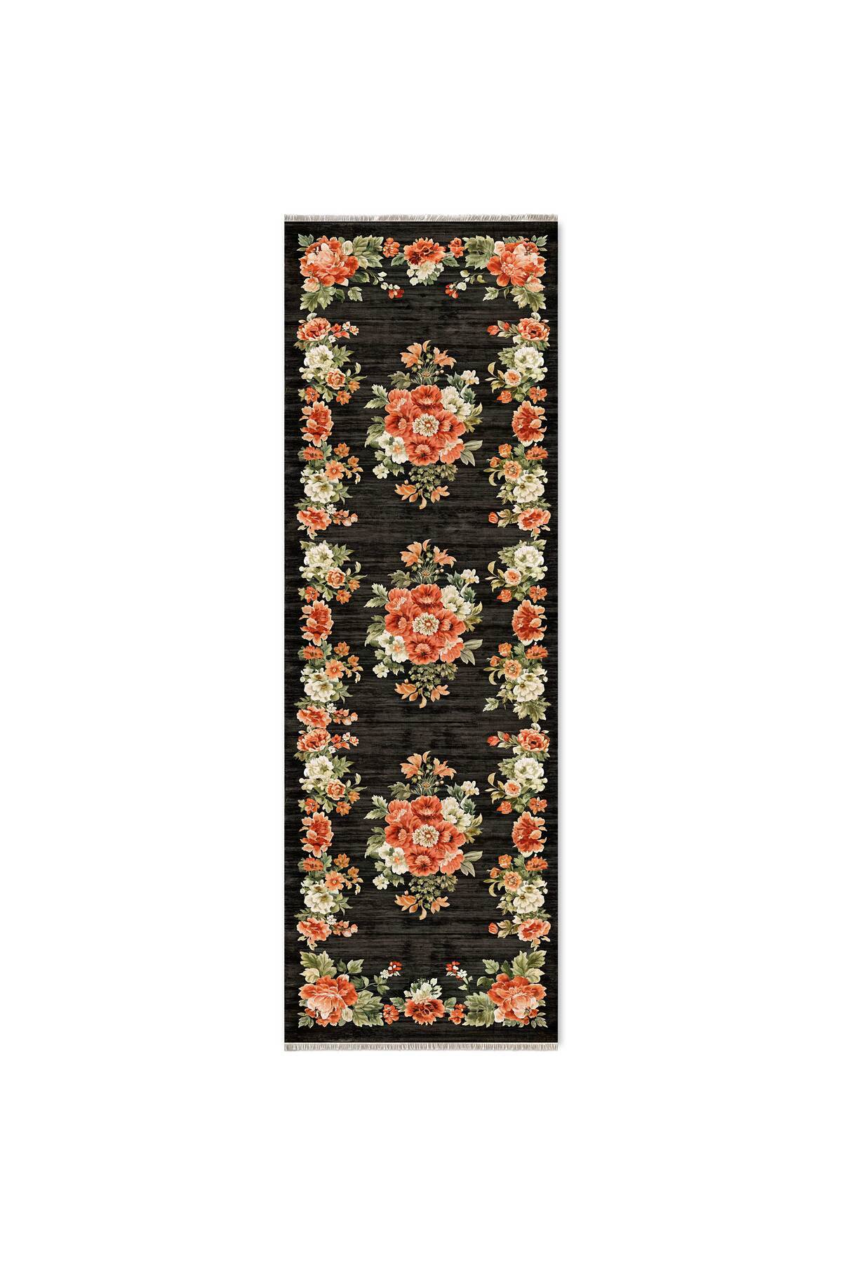 Eskitme Çok Renkli Çiçekli Kırmızı Şönil Kaymaz Yıkanabilir Saçaklı Oturma Odası Mutfak Yolluk Eskitme Çok Renkli Çiçekli Kırmızı Şönil Kaymaz Yıkanabilir Saçaklı Oturma Odası Mutfak Yolluk MD00605A 100 x 300