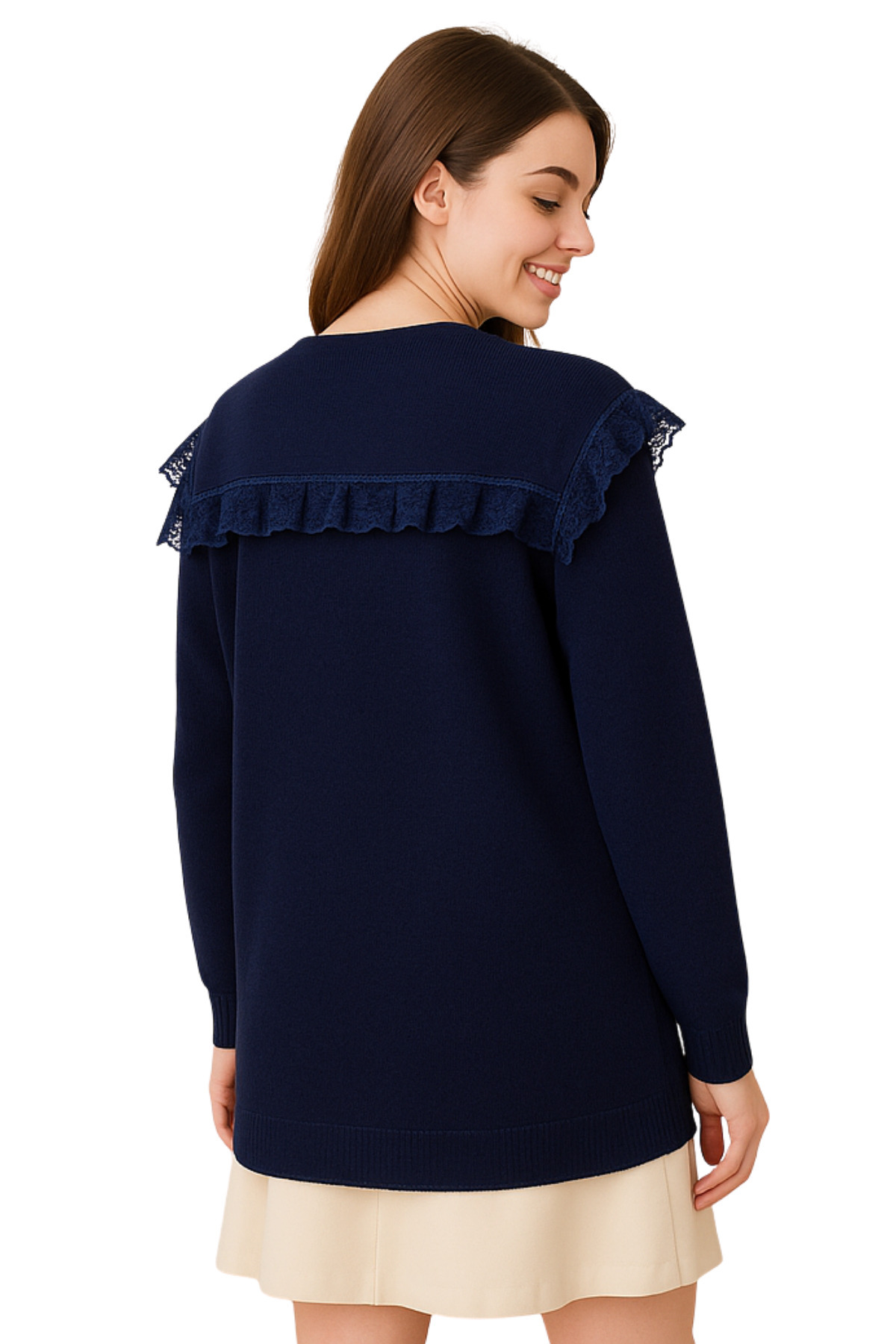 Yasemin Giyim Dantelli Retro Zarif Çiçek Aksesuarlı Fırfır Yaka Çiçekli Cepli Akrilik Triko Hırka Yasemin Giyim Dantelli Retro Zarif Çiçek Aksesuarlı Fırfır Yaka Çiçekli Cepli Akrilik Triko Hırka MDLKOD15 Standart