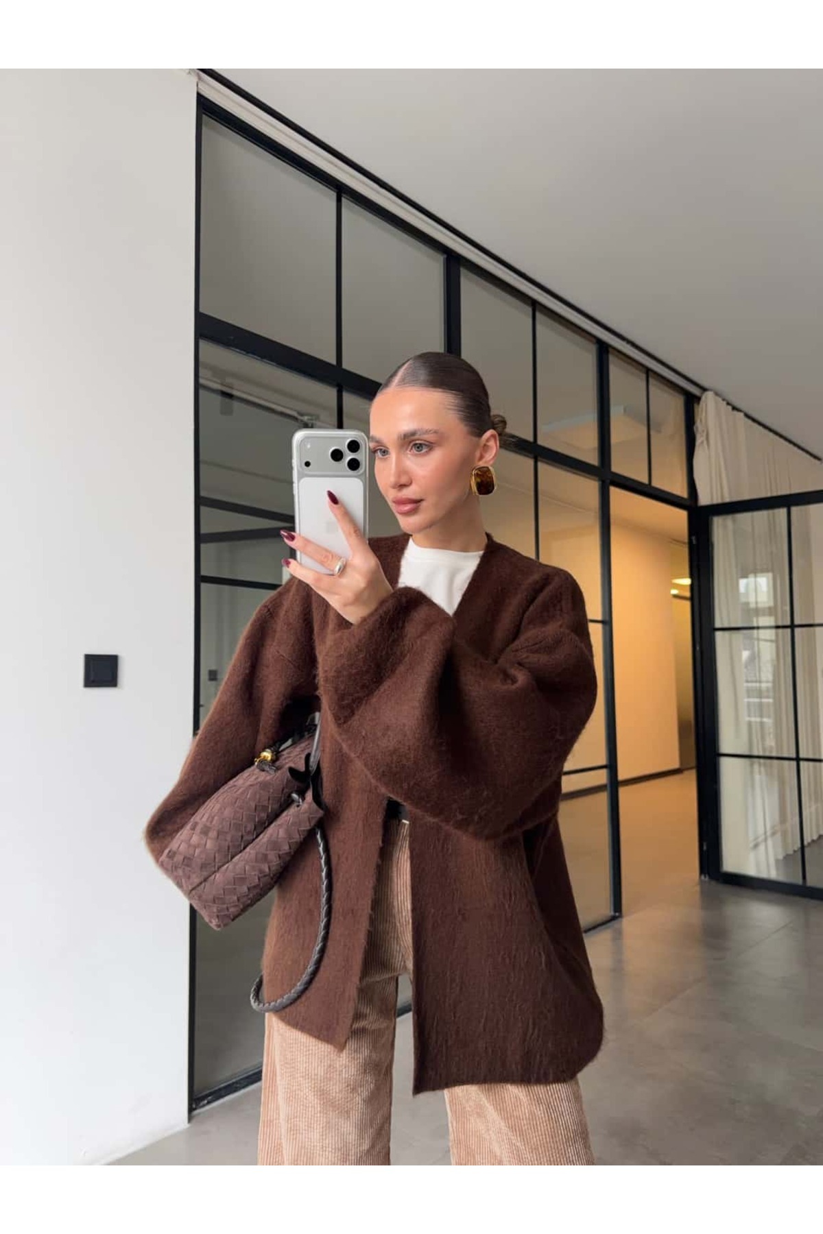 BALON KOL ŞARDONLU KAHVERENGİ HIRKA BALON KOL ŞARDONLU KAHVERENGİ HIRKA BB26PU0000K Standart
