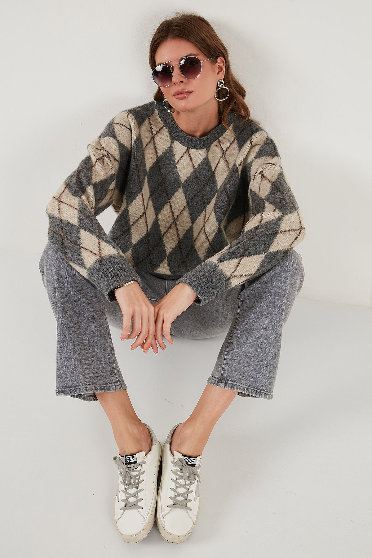 Oversize Fit Bisiklet Yaka Baklava Desenli Yumuşak Dokulu Kazak KAZAK 4616223 Oversize Fit Bisiklet Yaka Baklava Desenli Yumuşak Dokulu Kazak KAZAK 4616223 Standart