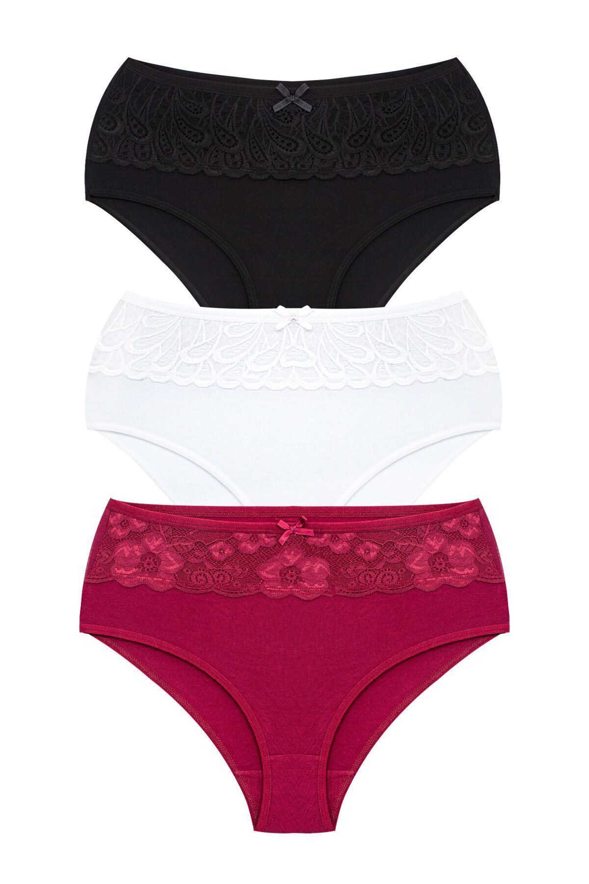 Kadın 3'lü Dantelli ve Tüllü Fantezi Külot (%96 Pamuk - %4 Elastan) Kadın 3'lü Dantelli ve Tüllü Fantezi Külot (%96 Pamuk - %4 Elastan) 4296-3 XL