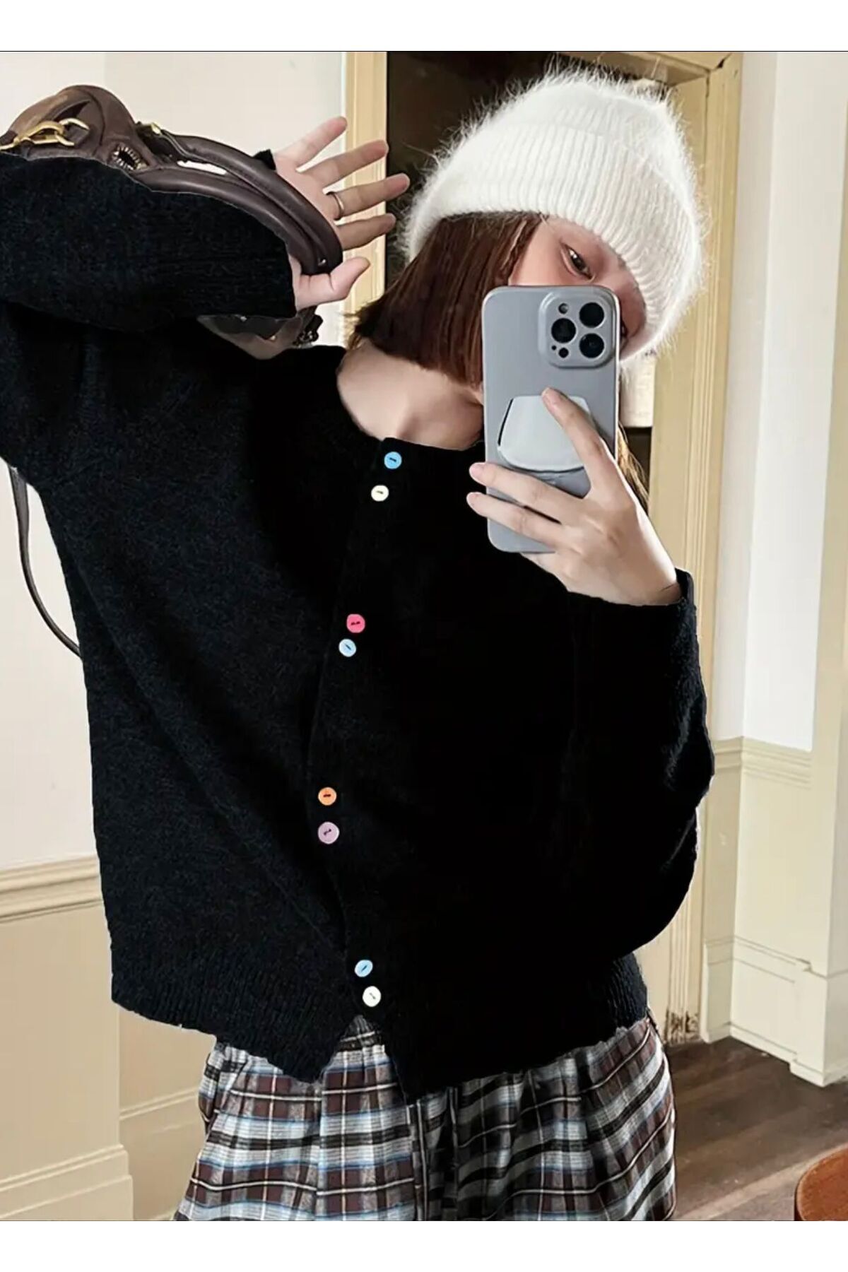 Kadın Renkli Düğmeli Triko Hırka Kadın Renkli Düğmeli Triko Hırka mk4002els Standart