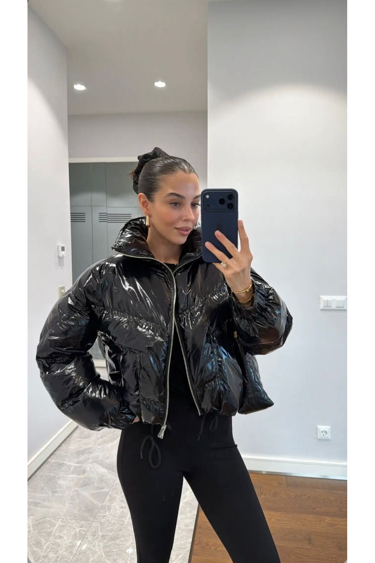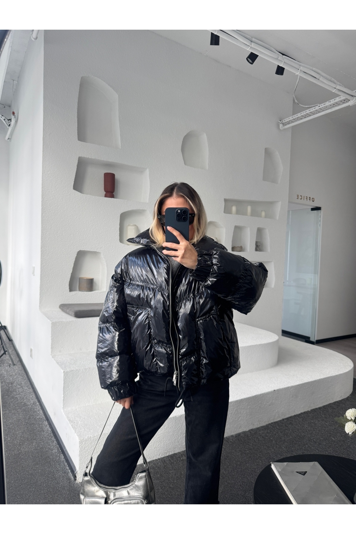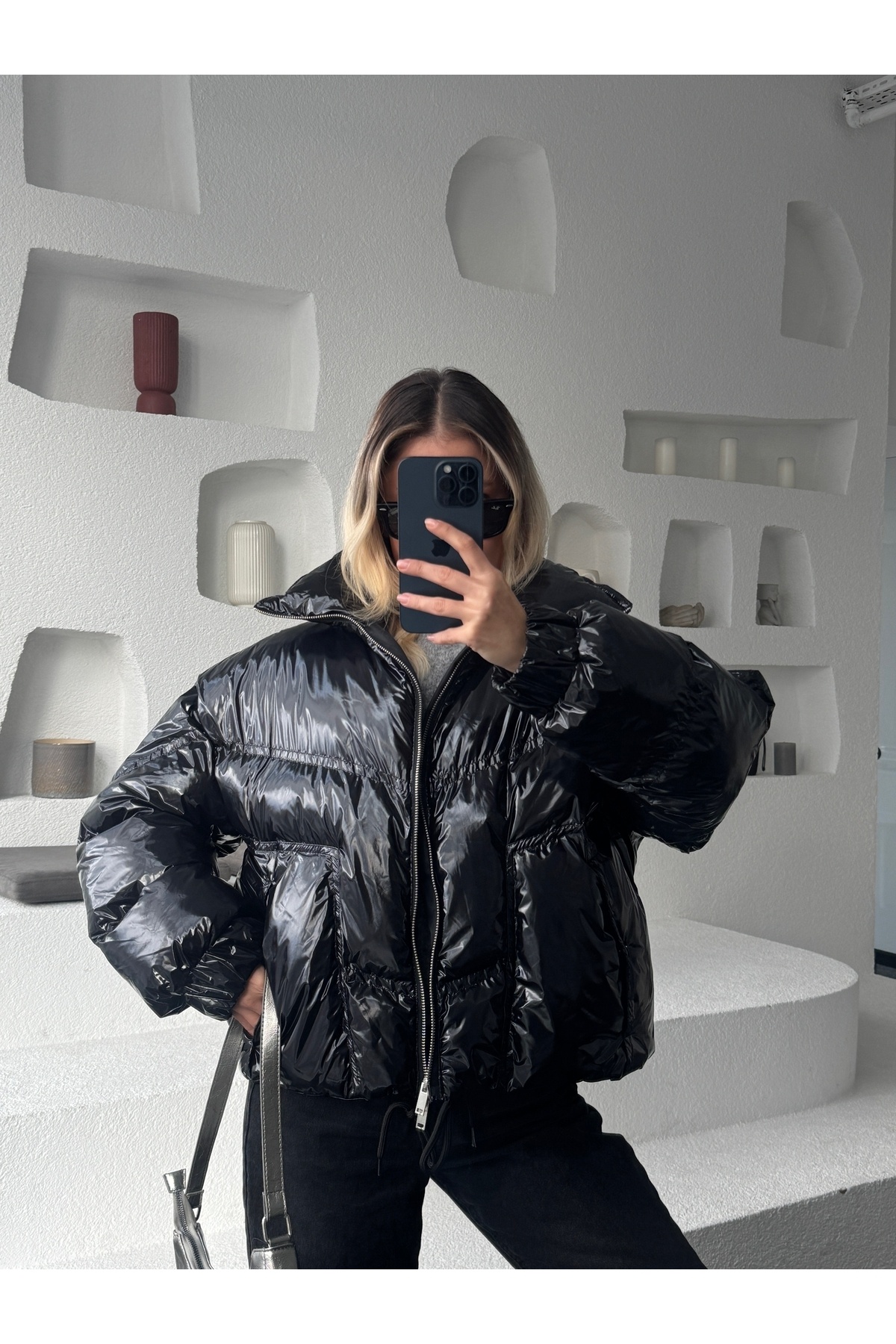 Kadın Siyah Parlak Şişme Mont Kadın Siyah Parlak Şişme Mont HLWM11772 M