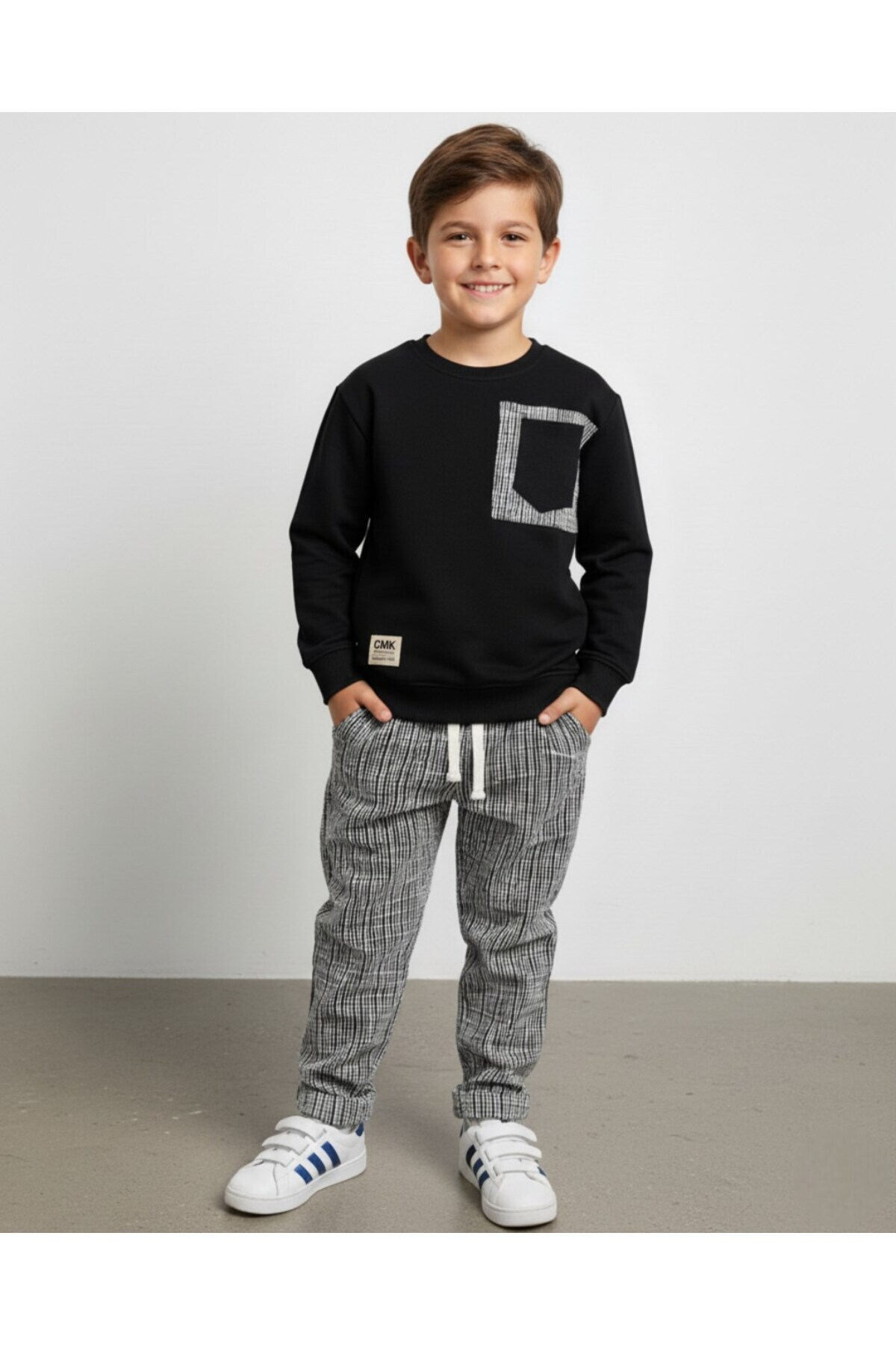 Erkek Çocuk Gömlek Yakalı, Cep Detaylı Sweatshirt ve Pantalonlu Şık 2'li Takım 4-11 Yaş Erkek Çocuk Gömlek Yakalı, Cep Detaylı Sweatshirt ve Pantalonlu Şık 2'li Takım 4-11 Yaş R2264 10-11 Yaş