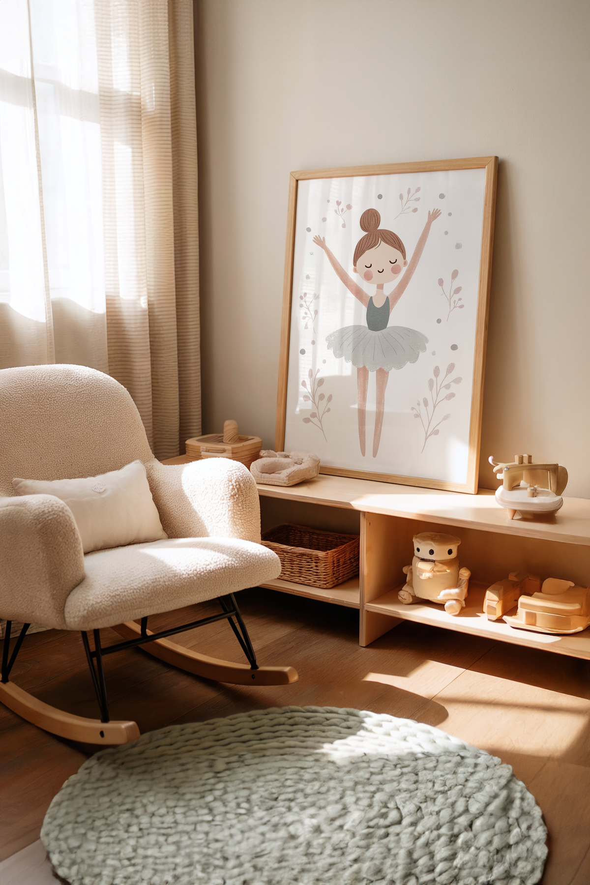 Tekli Doğal Ahşap Çerçeveli, Balerin Çocuk Odası Dekoru, El Yapımı Görünümlü İskandinav Tablo Tekli Doğal Ahşap Çerçeveli, Balerin Çocuk Odası Dekoru, El Yapımı Görünümlü İskandinav Tablo 0270244PT 30 x 40