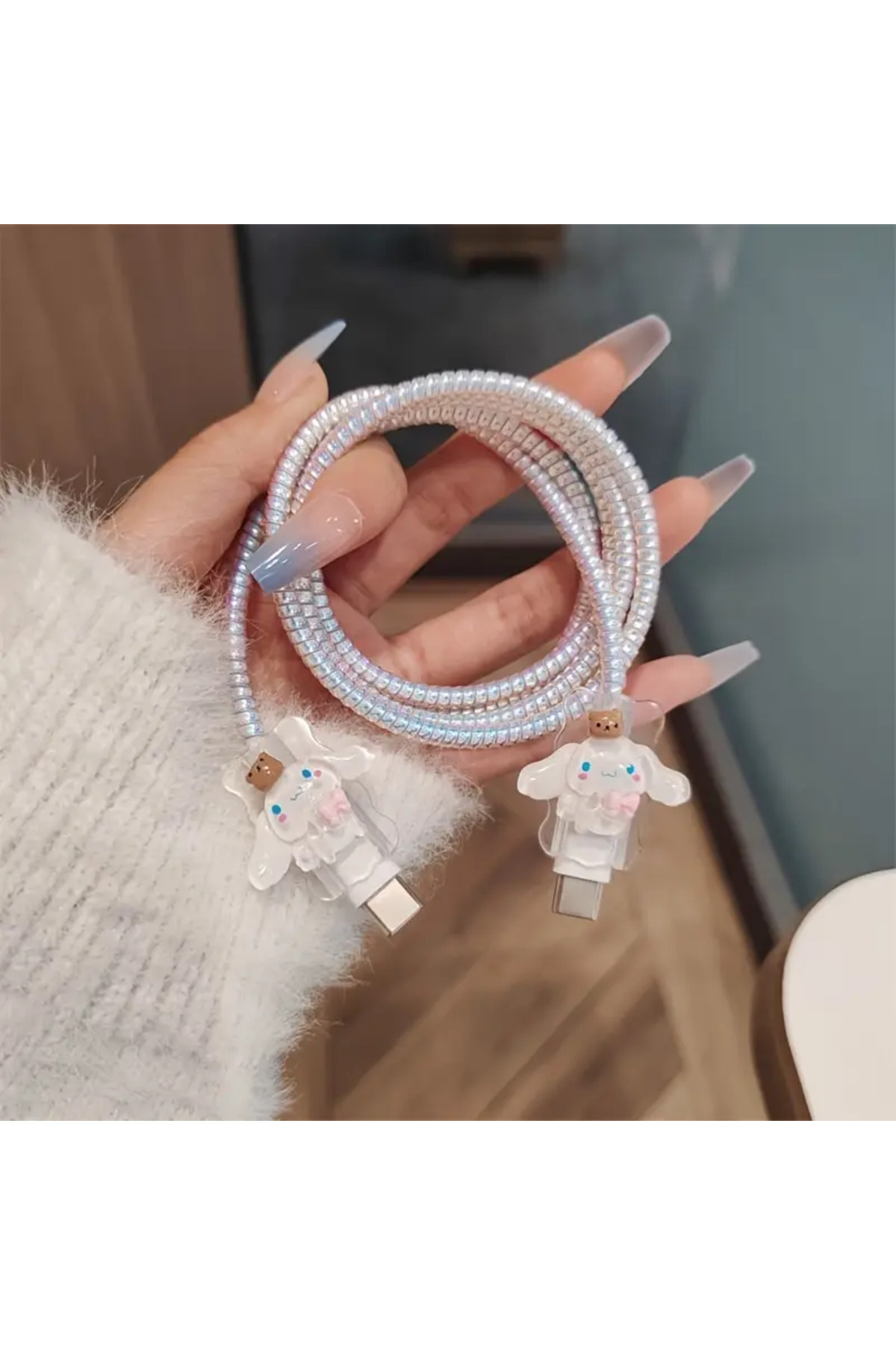 18W/20W Uyumlu Cinnamoroll Şarj Aleti Koruyucu Şarj Kablosu Örme Aparatlı Koruyucu Toparlayıcı 18W/20W Uyumlu Cinnamoroll Şarj Aleti Koruyucu Şarj Kablosu Örme Aparatlı Koruyucu Toparlayıcı Apple Şarj Koruyucu Set تک سایز