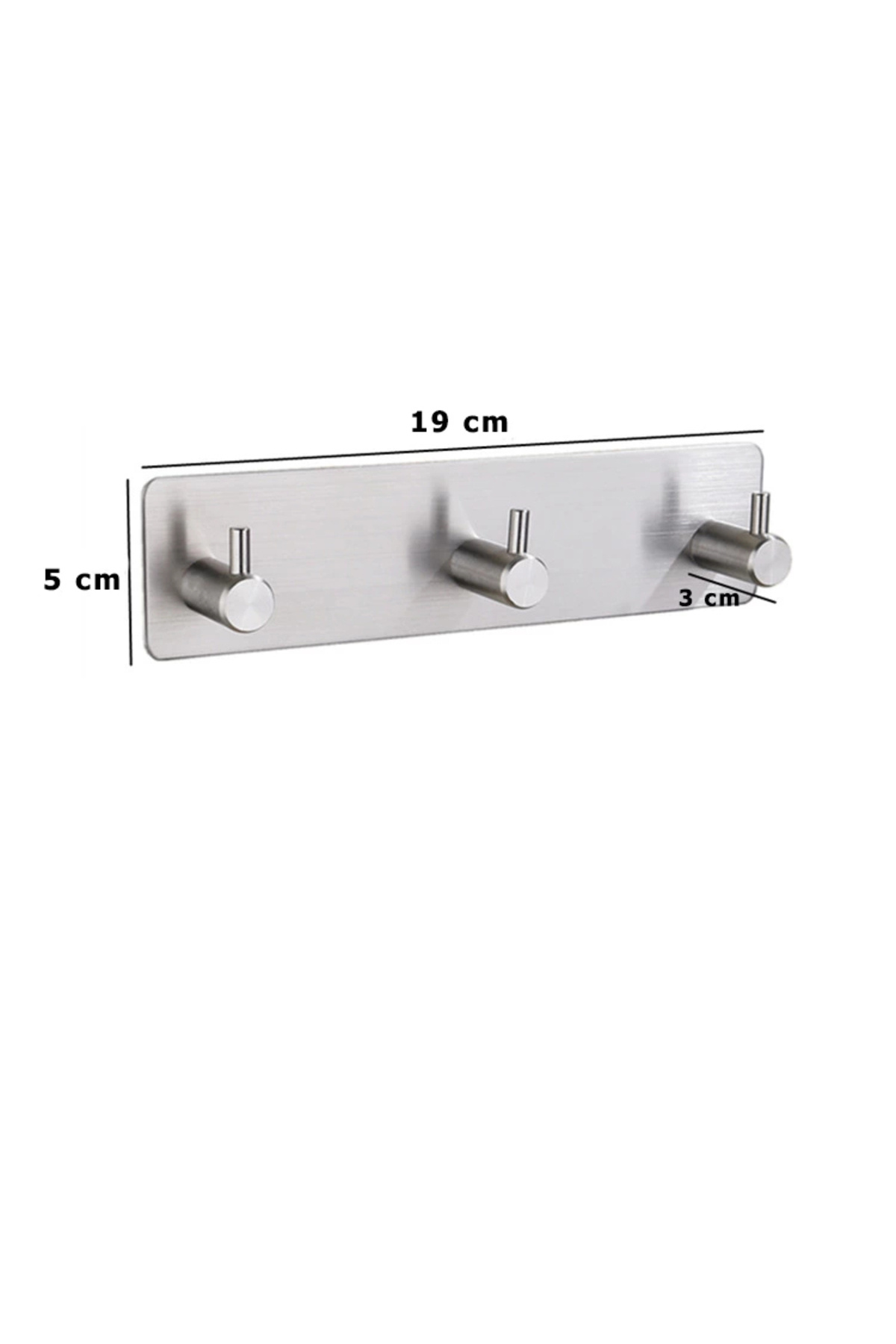 ASKILIK YAPIŞKANLI DİKDÖRTGEN ÇUBUKLU 3 KANCALI KROM