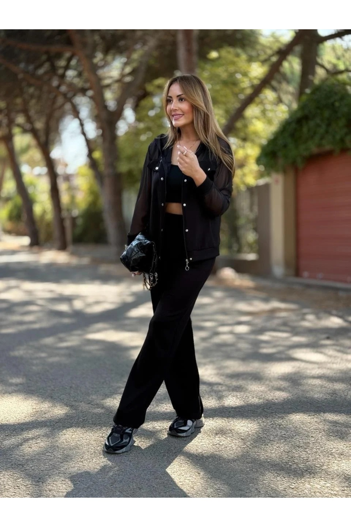 ŞANS LİFE Kadın Kolları & Üstü Tül Detaylı Kapşonlu Ceketli Pantolonlu Alt Üst İkili TAKIM ŞANS LİFE Kadın Kolları & Üstü Tül Detaylı Kapşonlu Ceketli Pantolonlu Alt Üst İkili TAKIM 164 XL