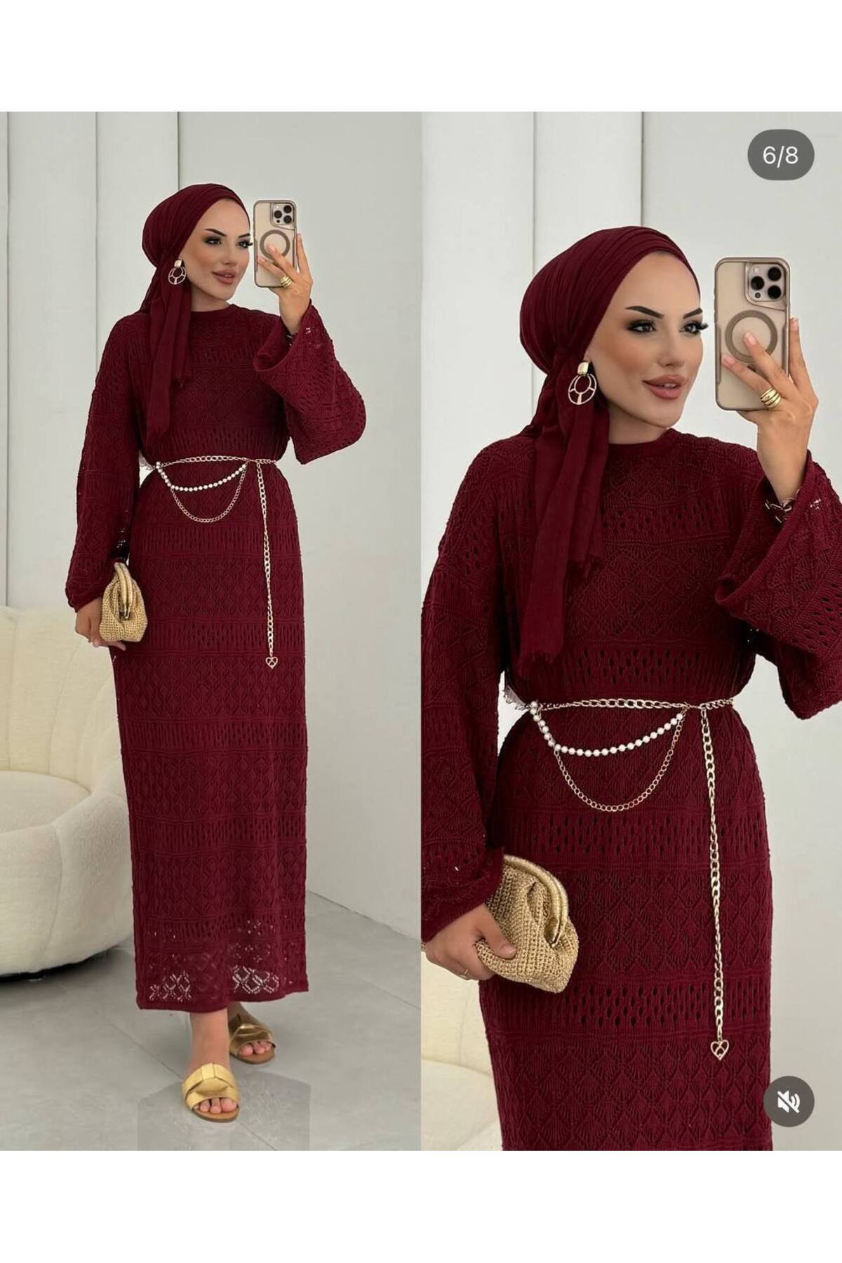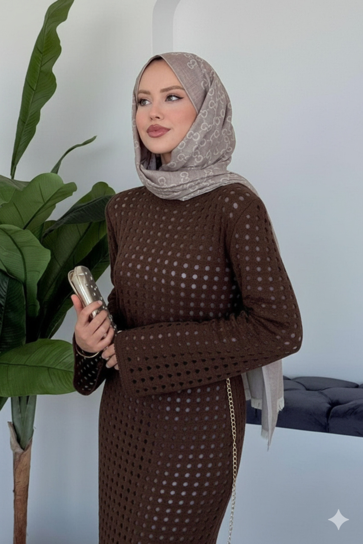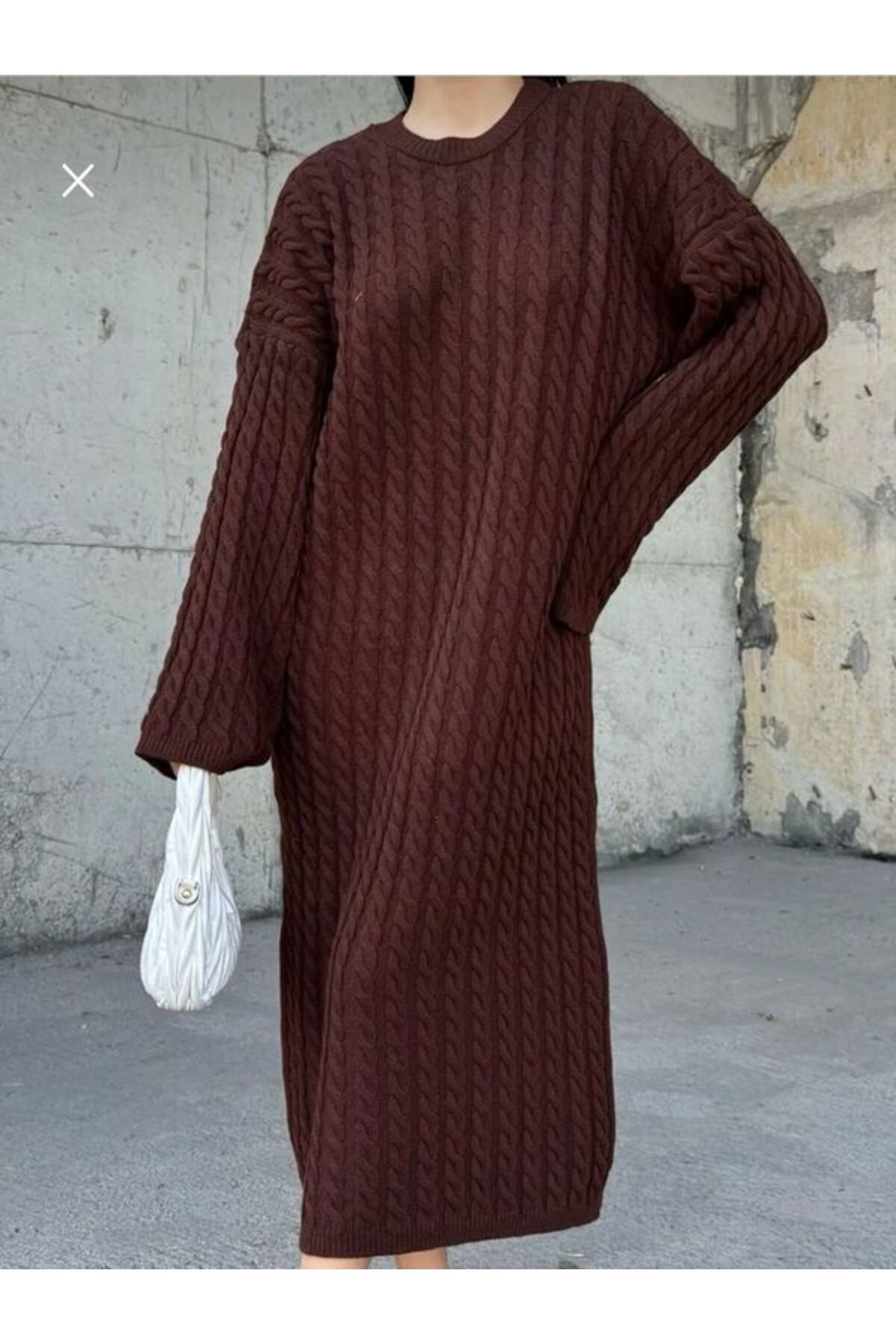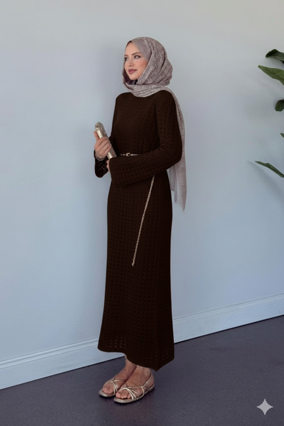 Fileli Triko Elbise Astarlı İç Göstermez Kahverengi Fileli Triko Elbise Astarlı İç Göstermez Kahverengi myriafll Standart