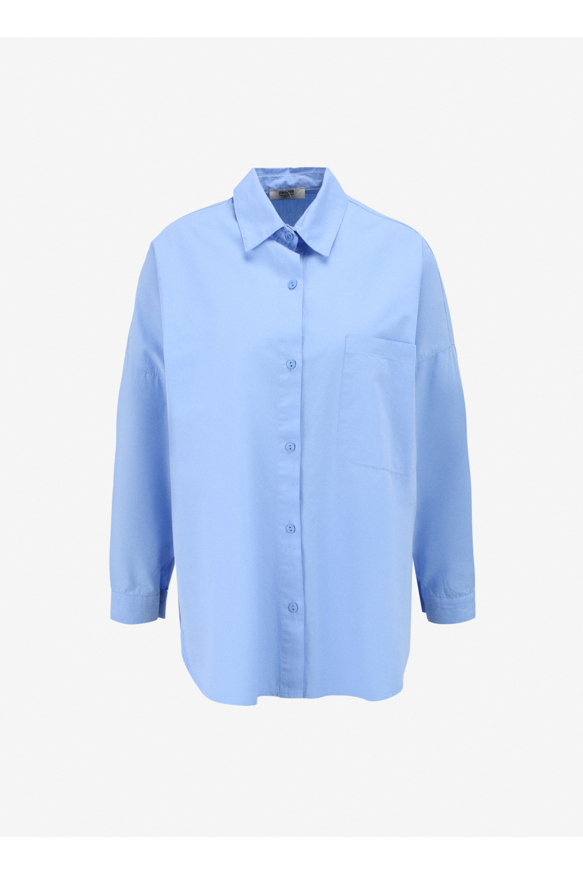 Loose Fit Gömlek Yaka Çizgili Lacivert - Beyaz Kadın Gömlek F5WL-GML0389 Loose Fit Gömlek Yaka Çizgili Lacivert - Beyaz Kadın Gömlek F5WL-GML0389 5003273893 42