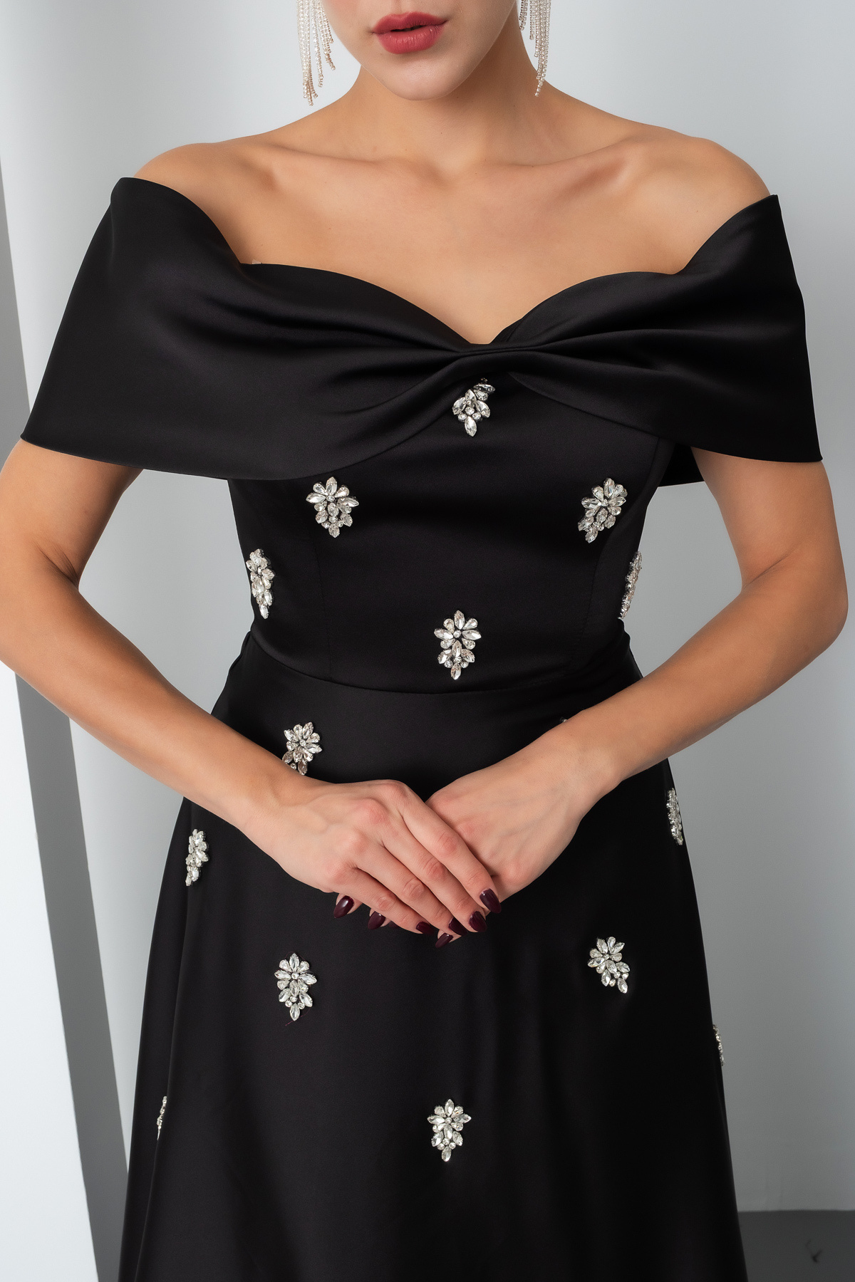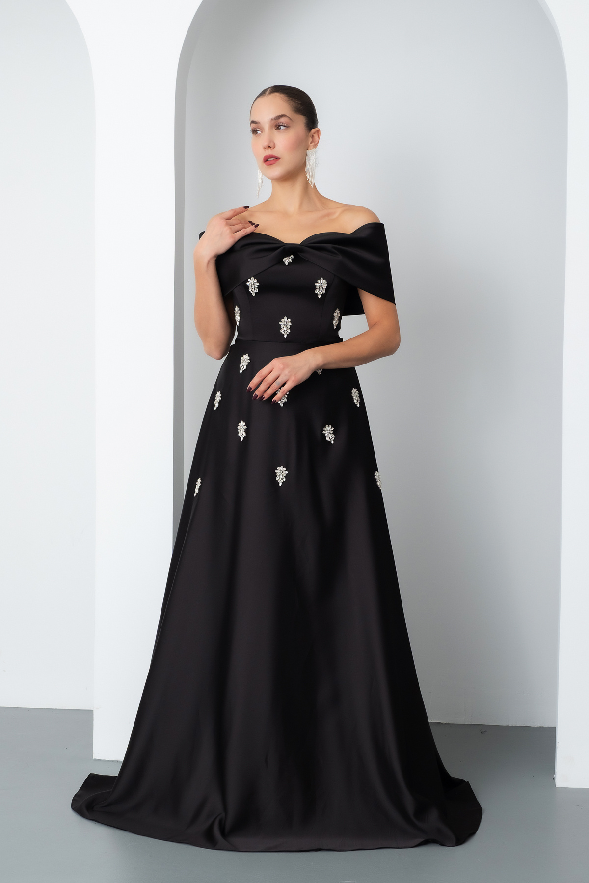 Kadın Siyah Straplez Taşlı Uzun Saten Abiye Elbise Kadın Siyah Straplez Taşlı Uzun Saten Abiye Elbise 25Y822284 42