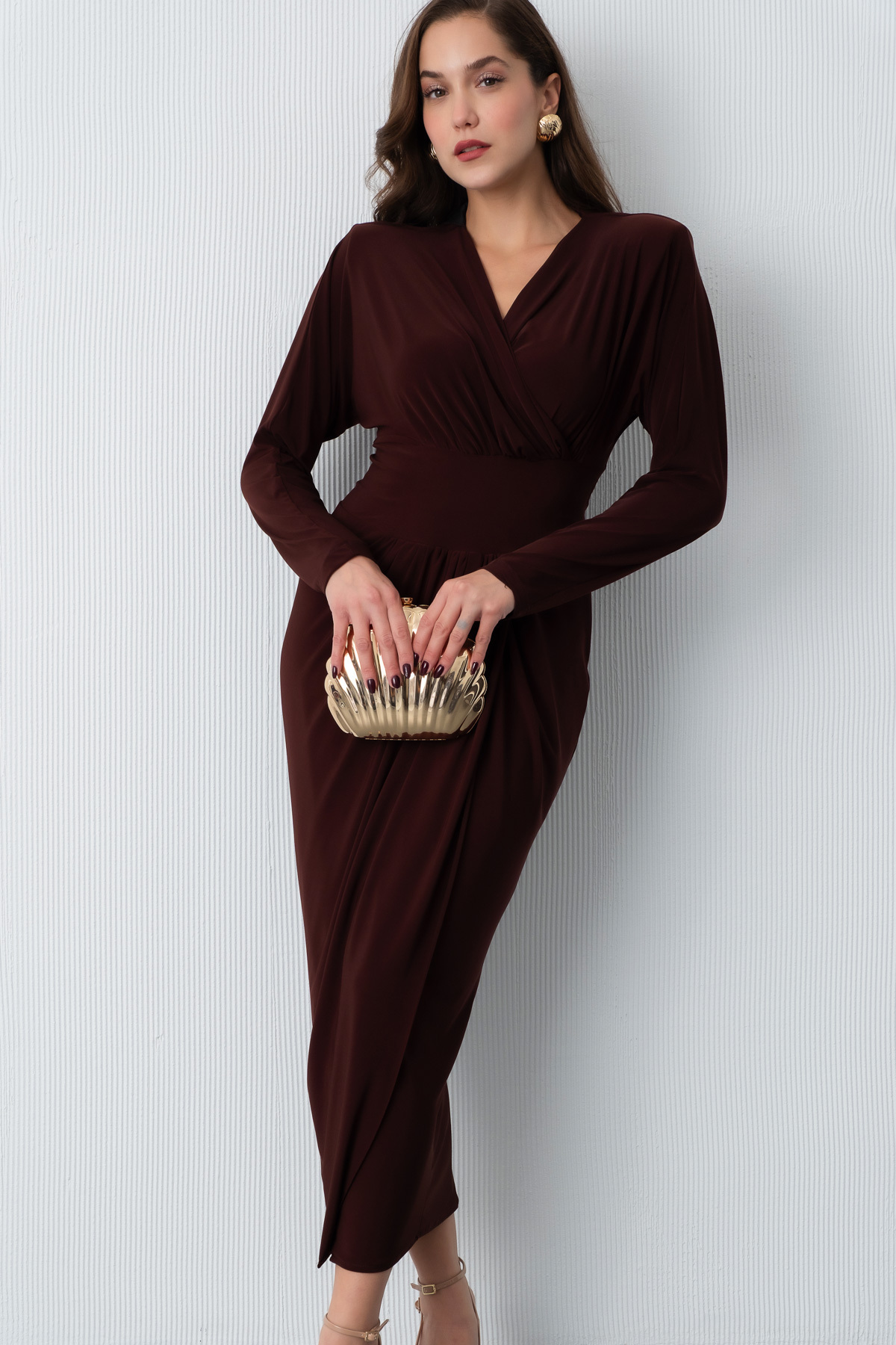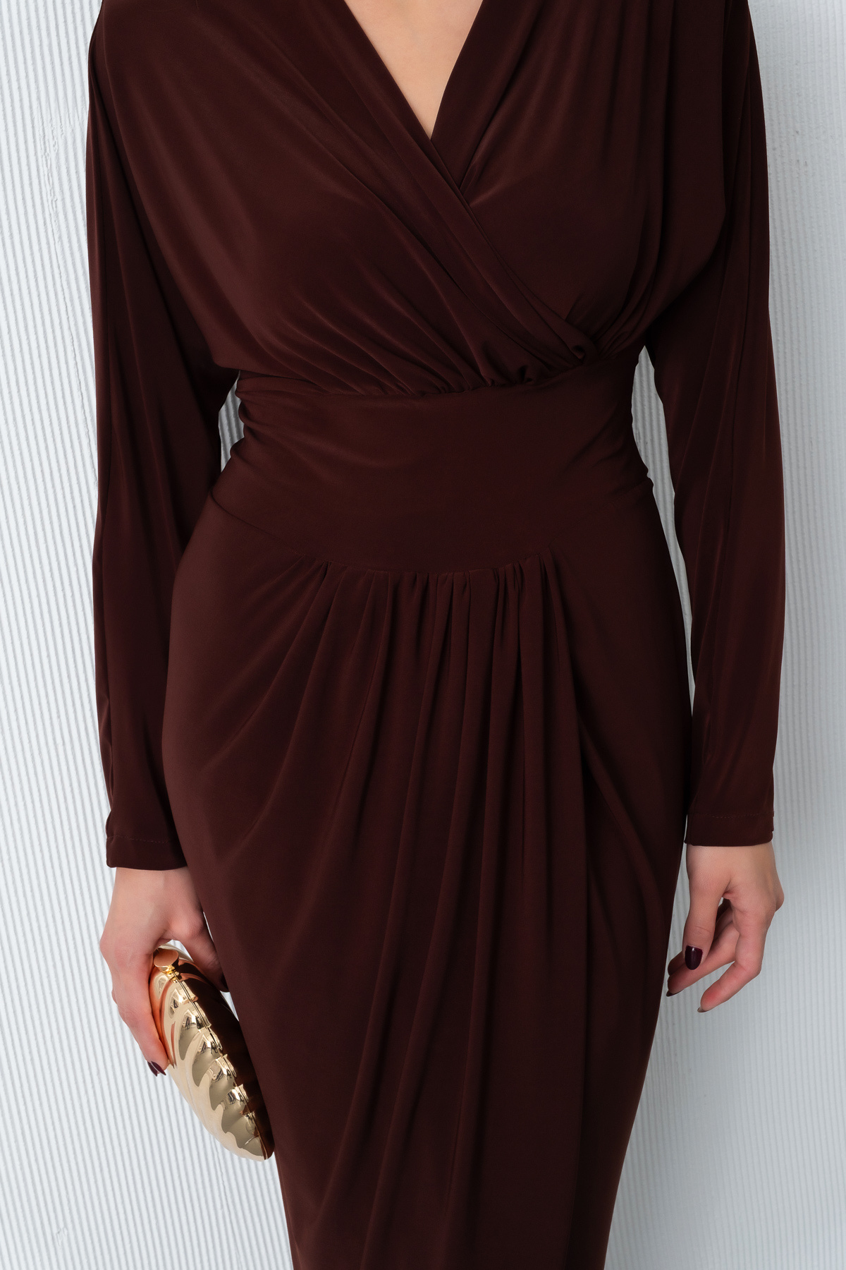 Kadın Kahverengi V Yaka Midi Elbise Kadın Kahverengi V Yaka Midi Elbise 25K873028 XL
