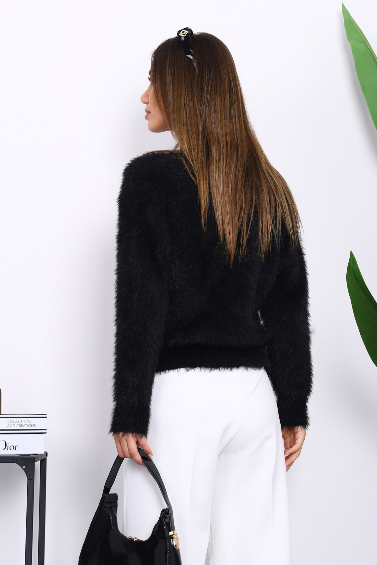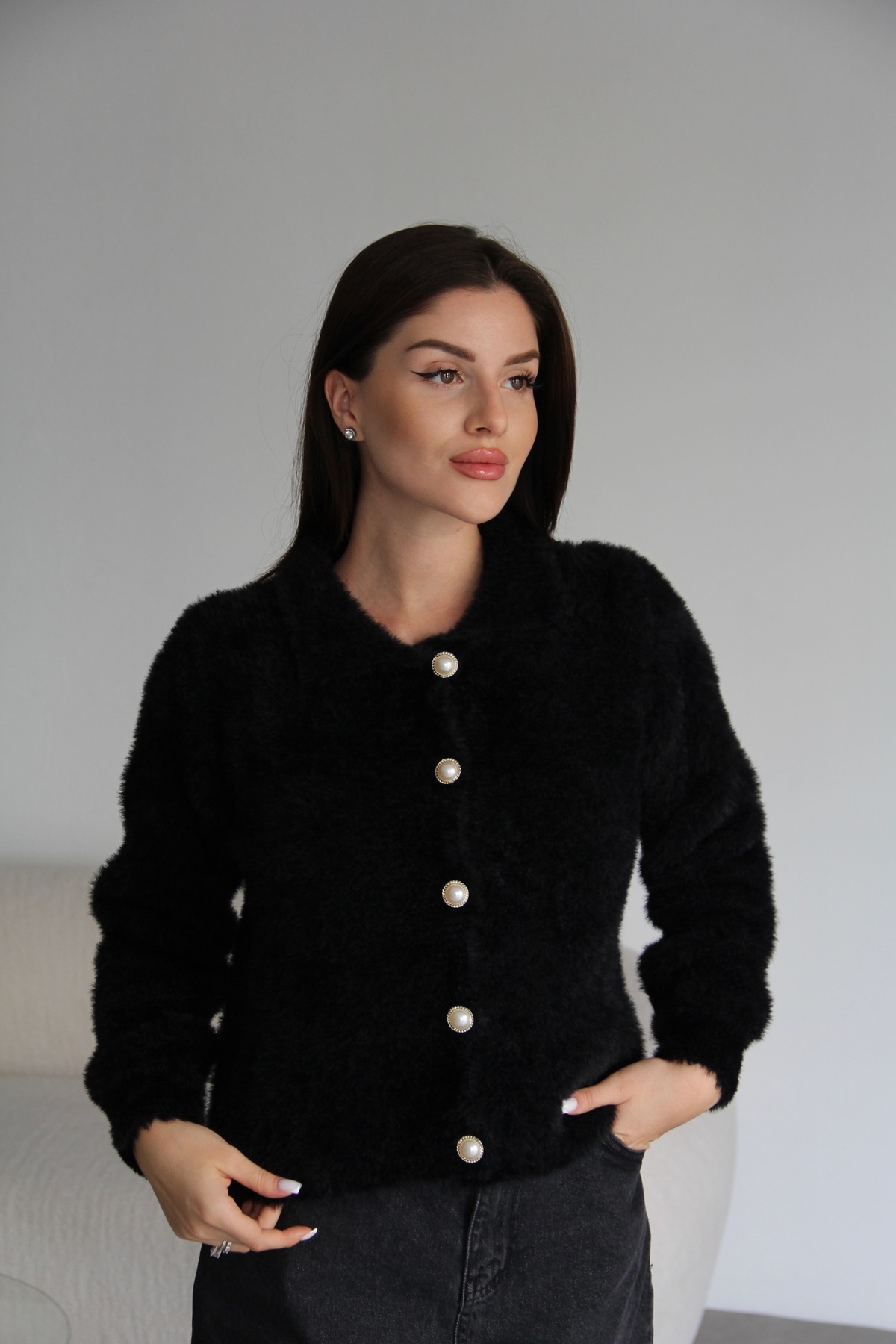 Siyah Dümeli Kısa Angora Yumoş Triko Hırka Siyah Dümeli Kısa Angora Yumoş Triko Hırka IMJ007497 Standart