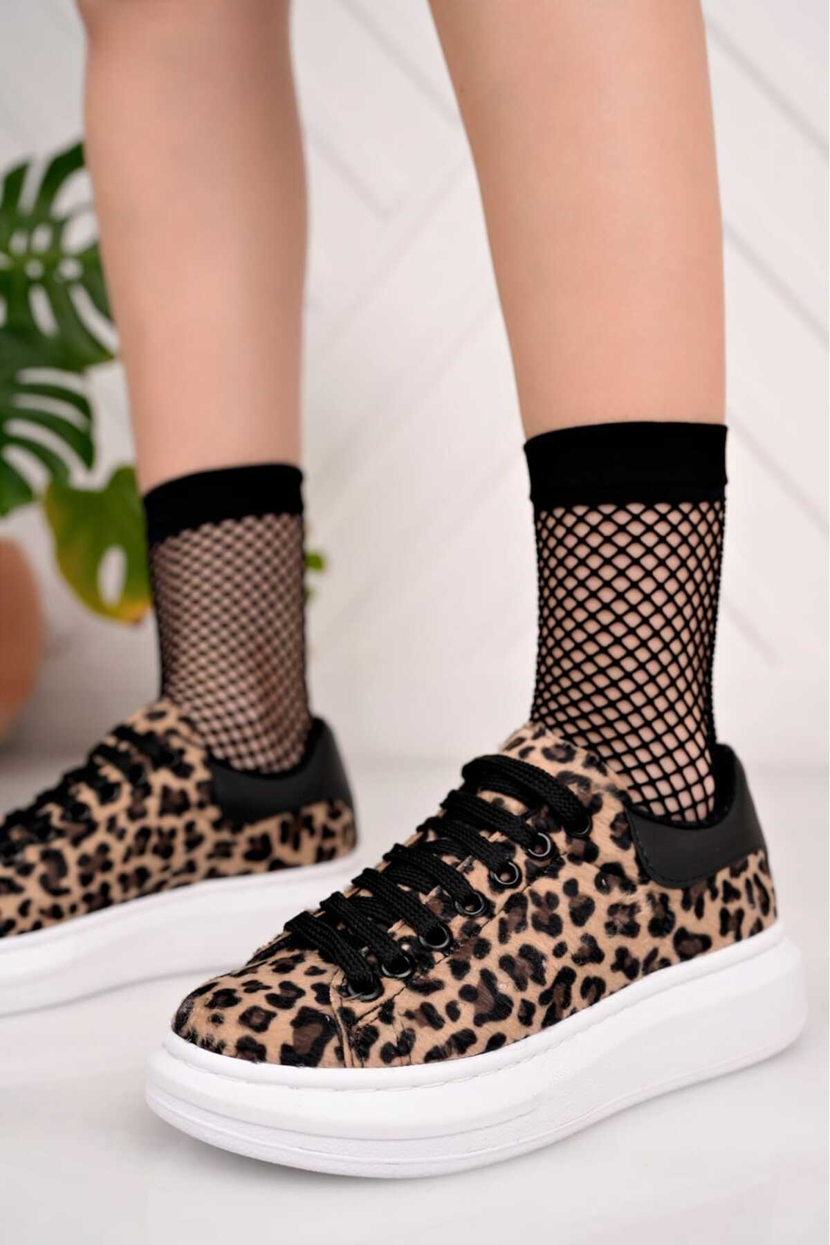 Günlük Spor Ayakkabı Kadın Sneaker Bağcıklı Leopar Siyah-Beyaz-Kahverengi Günlük Spor Ayakkabı Kadın Sneaker Bağcıklı Leopar Siyah-Beyaz-Kahverengi Leopar Ayakkabı 40