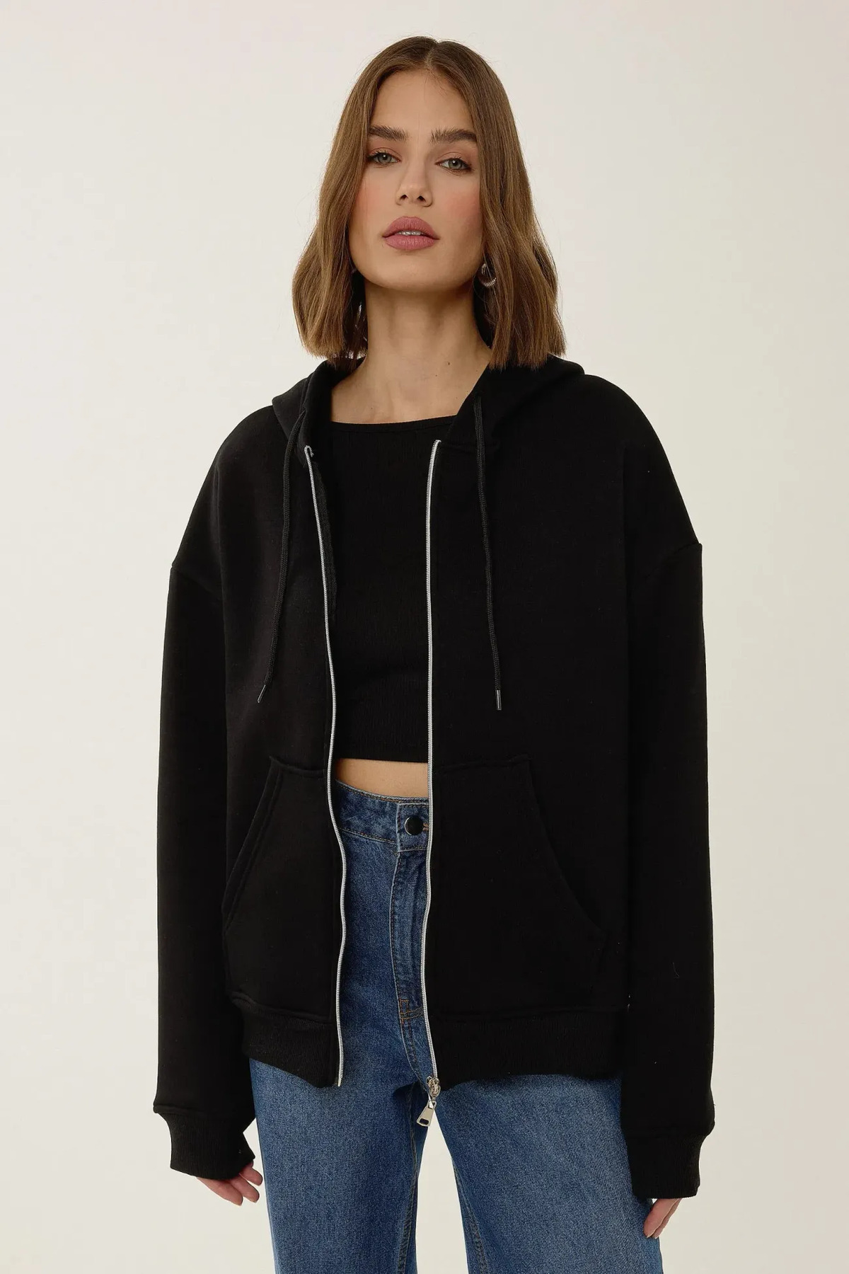 Şardonlu Cepli Fermuarlı Kapüşonlu Sweatshirt Busem Collection Şardonlu Cepli Fermuarlı Kapüşonlu Sweatshirt Busem Collection MFMEVAPE L