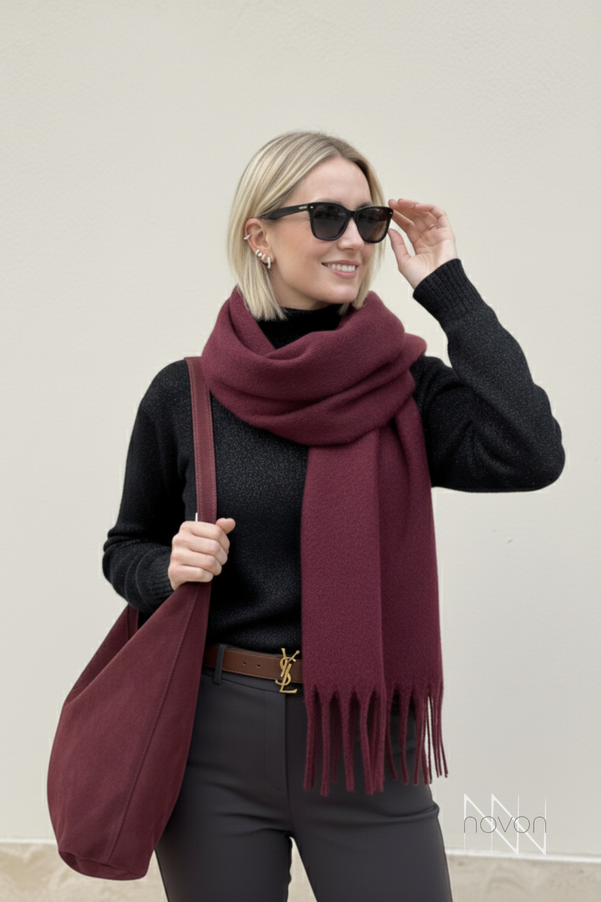 Klein Soft Touch Püskül Detaylı Yün Dokulu Premium Bordo Kışlık Şal Saçaklı Atkı (195 x 45 cm) Klein Soft Touch Püskül Detaylı Yün Dokulu Premium Bordo Kışlık Şal Saçaklı Atkı (195 x 45 cm) 26KAATK1971 تک سایز