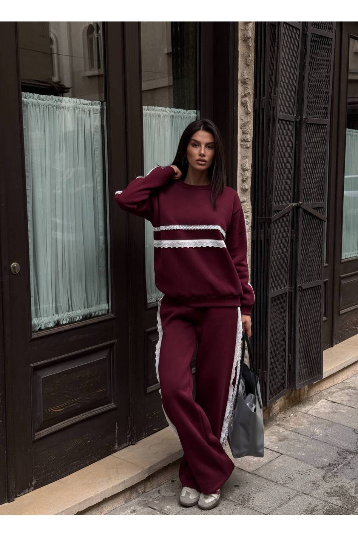 Dantel Detaylı Bisiklet Yaka Üç İplik Şardonlu Sweatshirt Eşofman Takım Dantel Detaylı Bisiklet Yaka Üç İplik Şardonlu Sweatshirt Eşofman Takım AD1210077 L