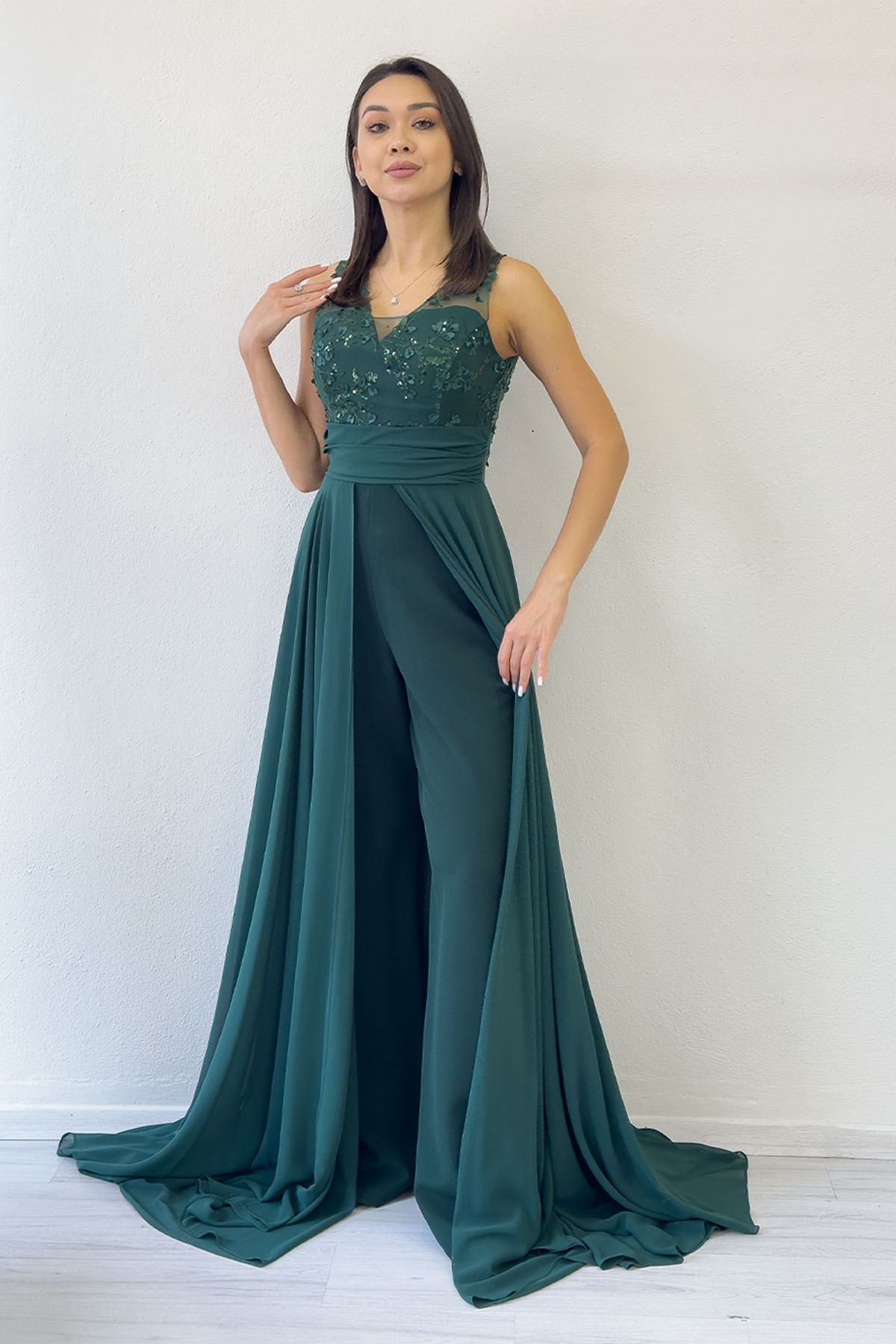 Tüylü Abiye Tulum - Taş Detaylı Pelerinli Geniş Paça Toptan-6859 Tüylü Abiye Tulum - Taş Detaylı Pelerinli Geniş Paça Toptan-6859 ROB6859 42