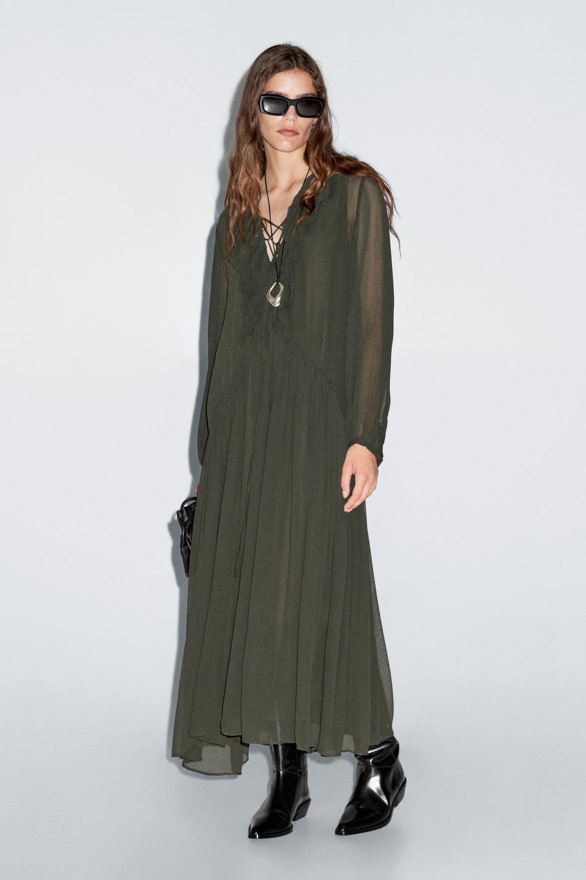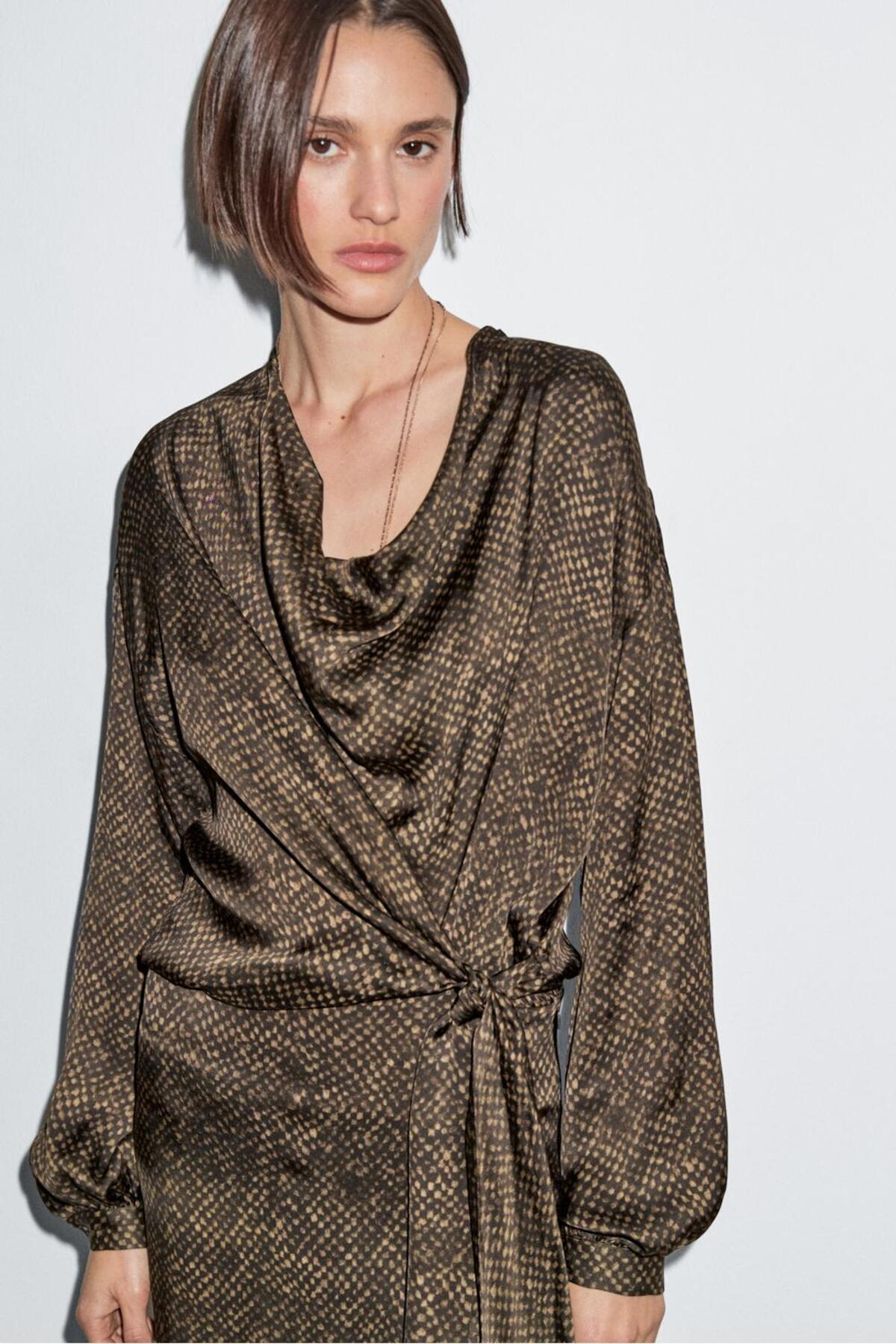 Drapeli kuşak kemerli uzun dökümlü elbise Drapeli kuşak kemerli uzun dökümlü elbise 00110779206652505 42