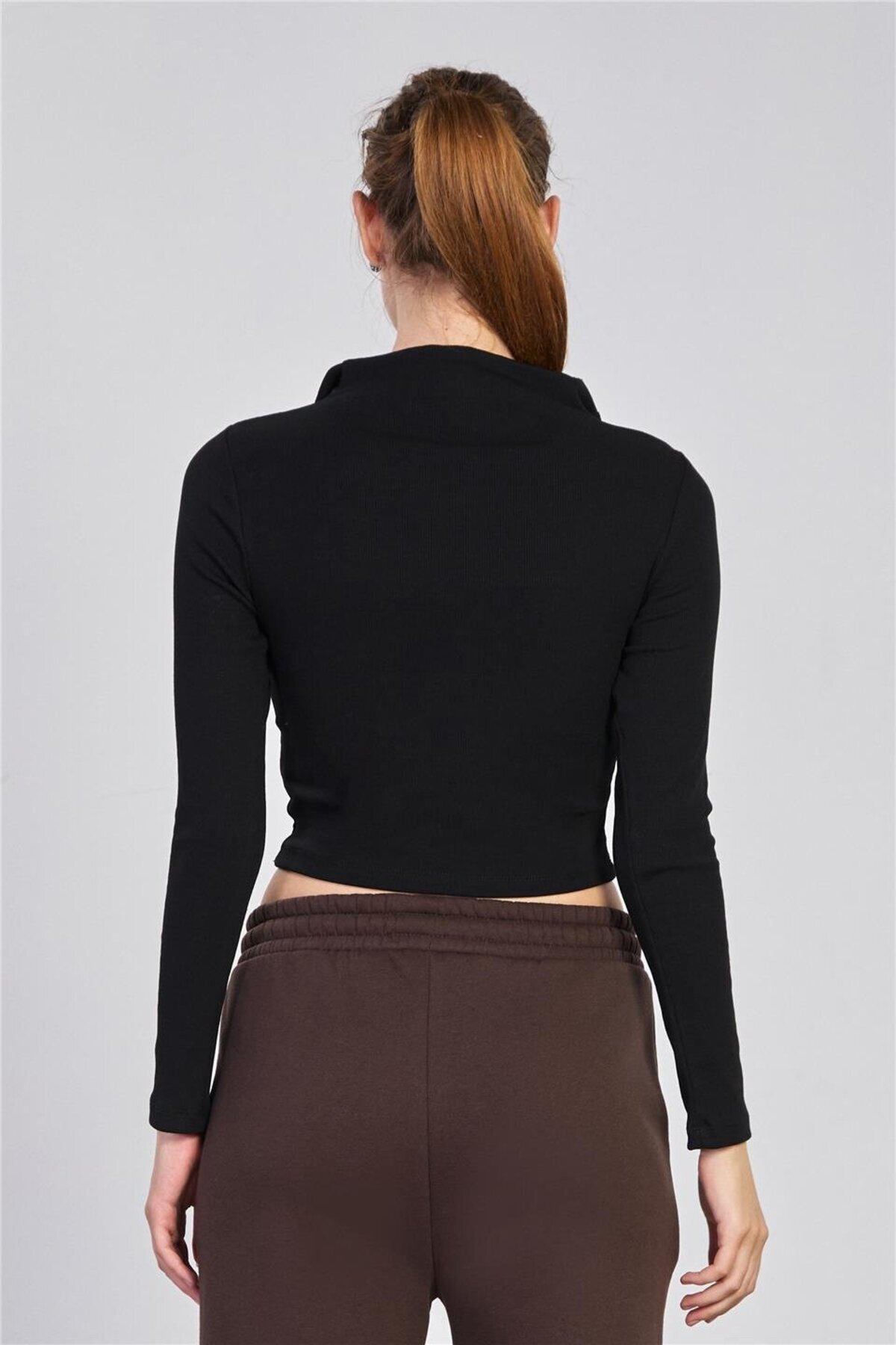 Kadın Dik Yaka Önü Fermuarlı Crop Body - Siyah Kadın Dik Yaka Önü Fermuarlı Crop Body - Siyah 447-25M009 L