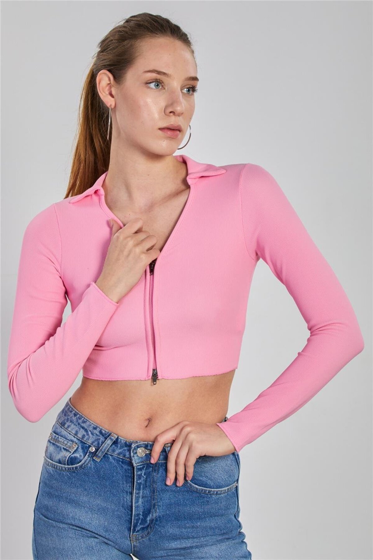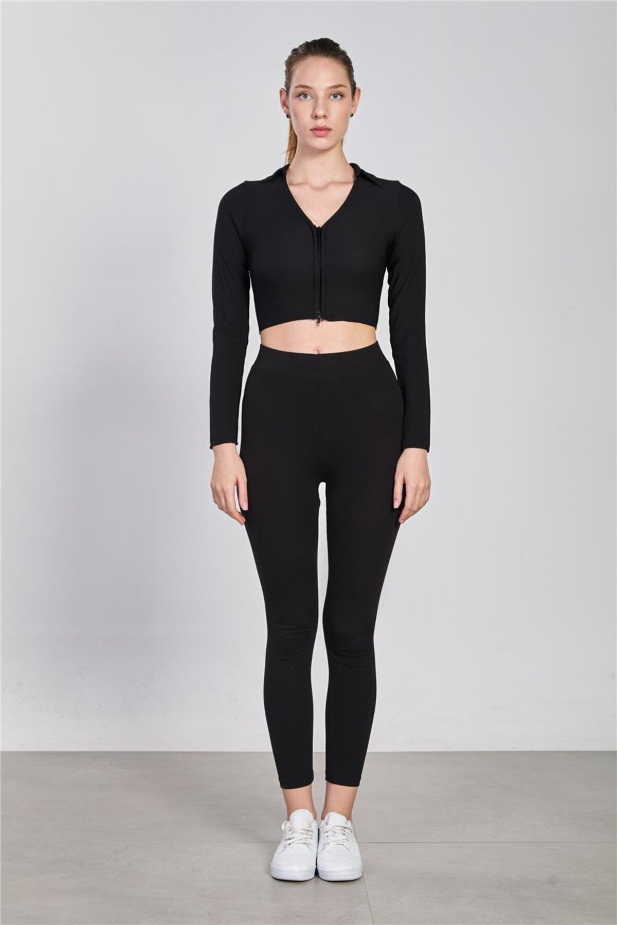 Kadın Önü Fermuarlı Uzun Kol Crop Body - Siyah Kadın Önü Fermuarlı Uzun Kol Crop Body - Siyah 847-25NS003 L