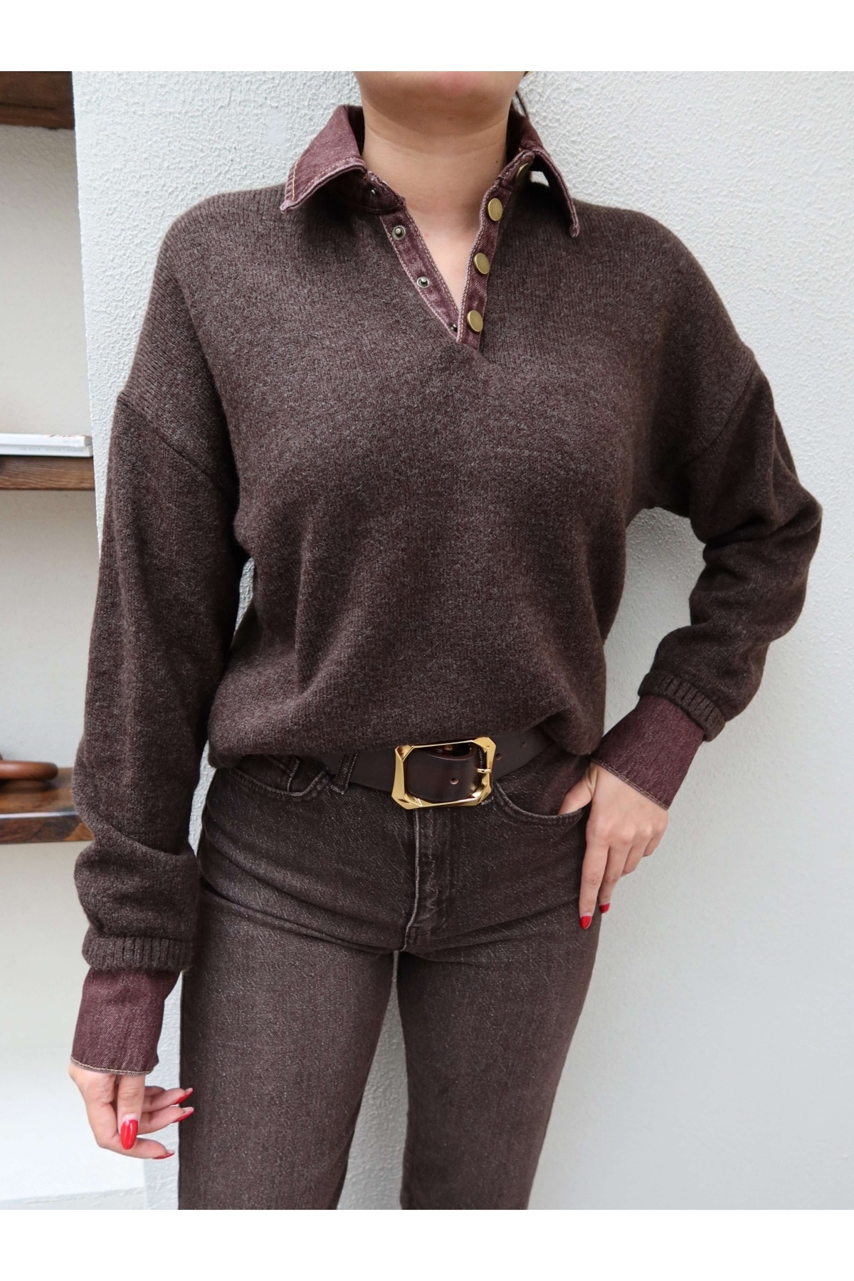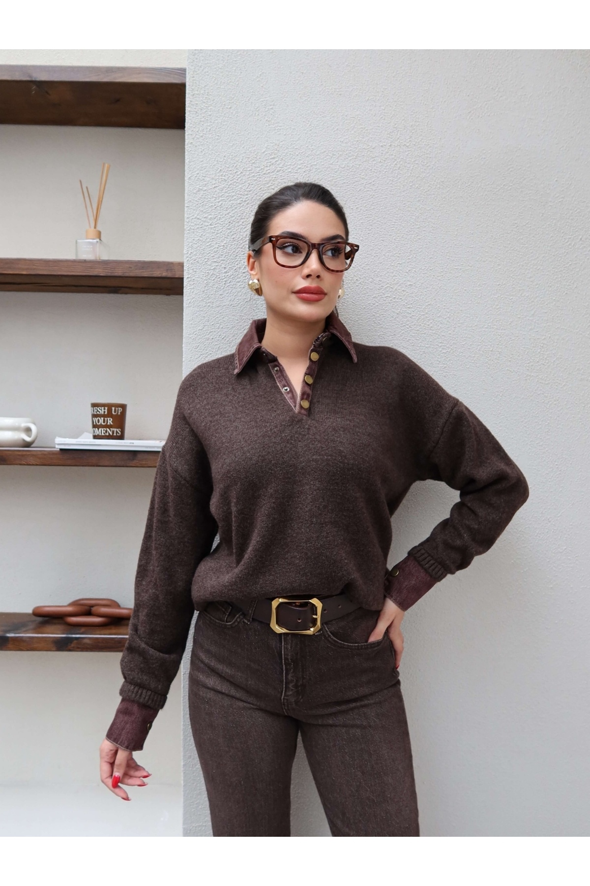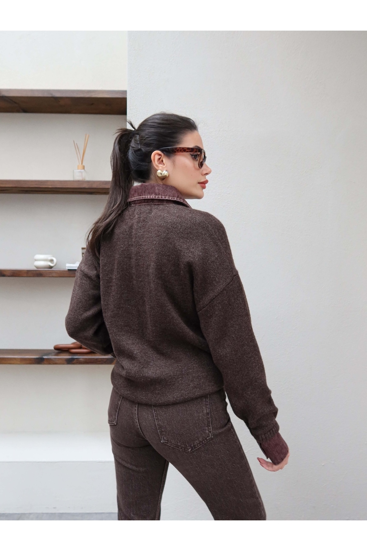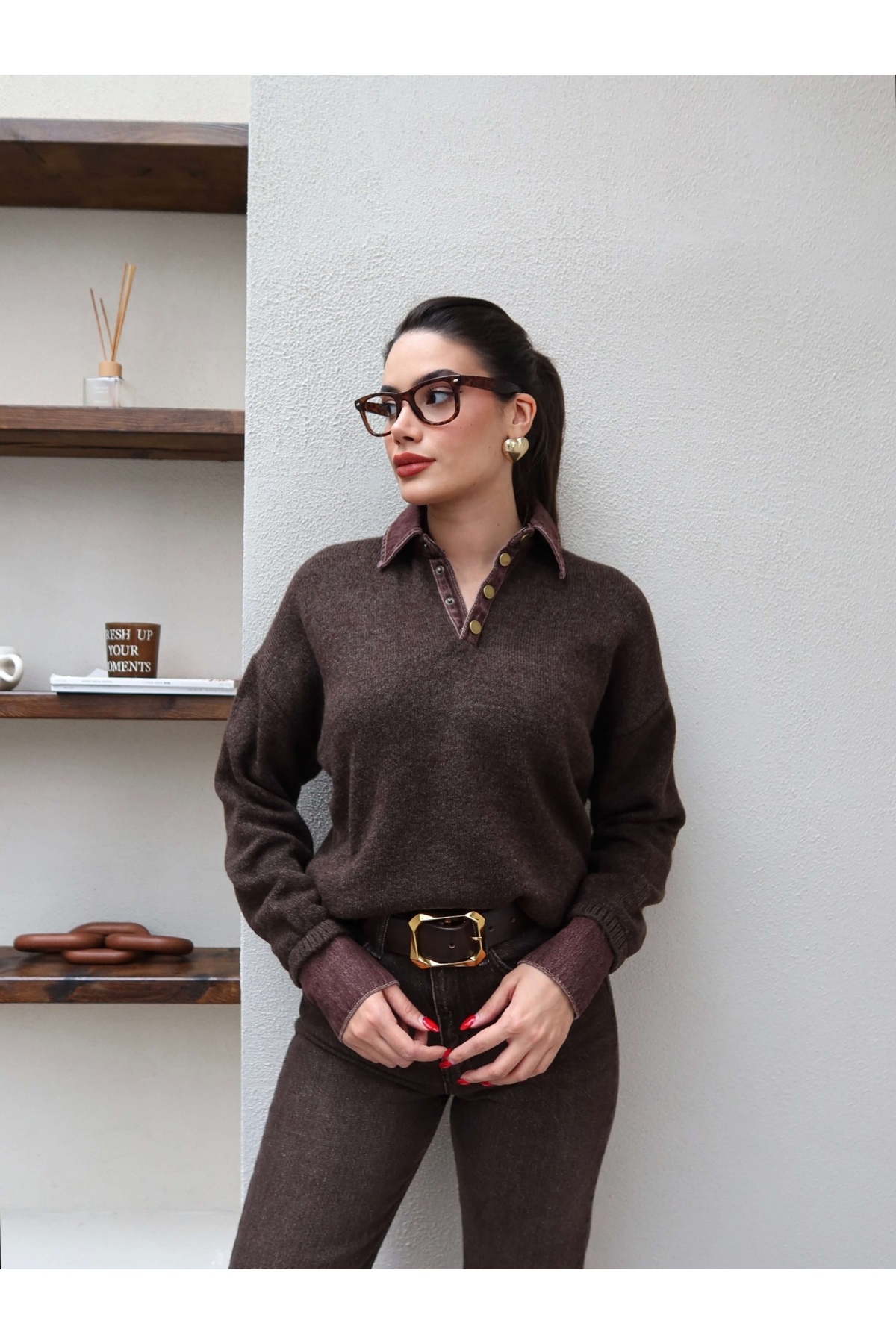 Çıtçıtlı Denim Detay Triko Kazak Çıtçıtlı Denim Detay Triko Kazak EH-6085 Standart