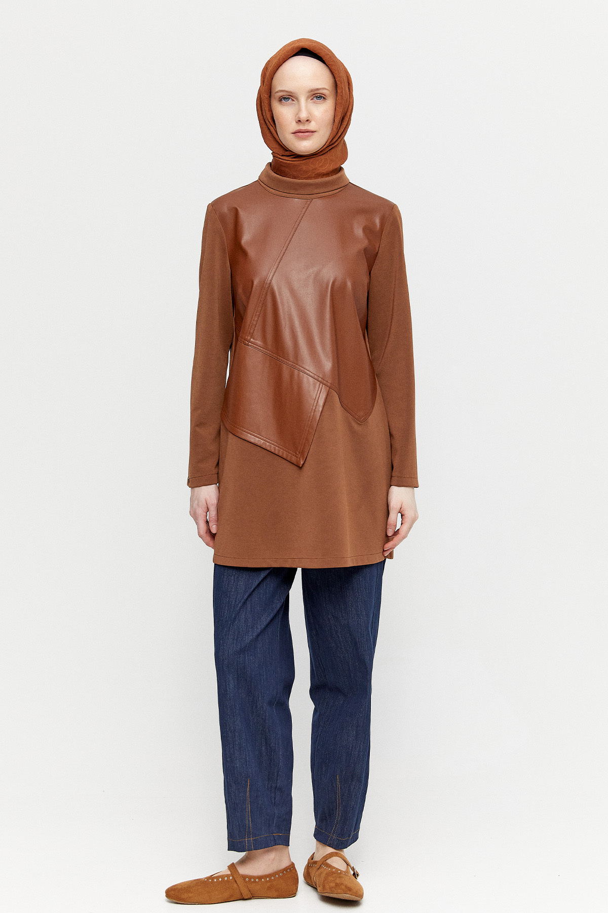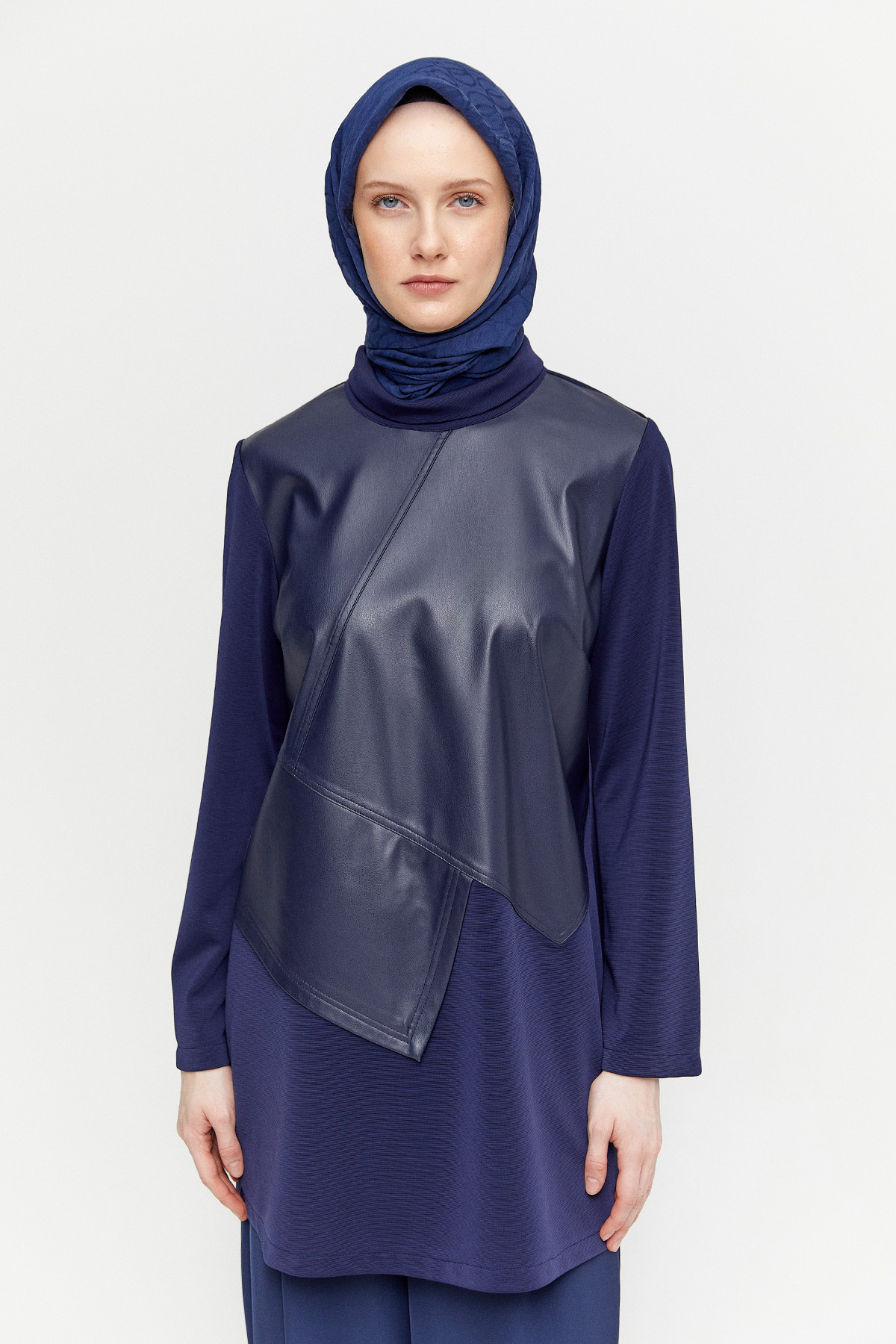 Asimetrik Suni Deri Kombinli Tunik Asimetrik Suni Deri Kombinli Tunik 261.TNK.ST.0011 XL
