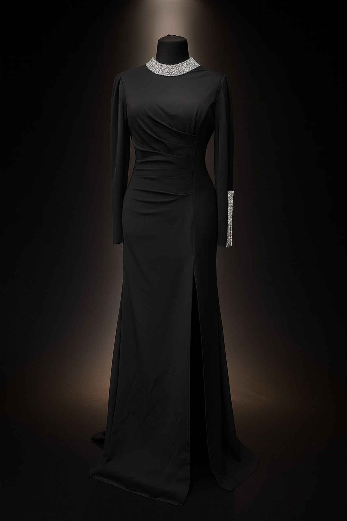 Yakası Taş Detaylı Omuzu Kat Drapeli Abiye -Laci Yakası Taş Detaylı Omuzu Kat Drapeli Abiye -Laci TY316-4783 44